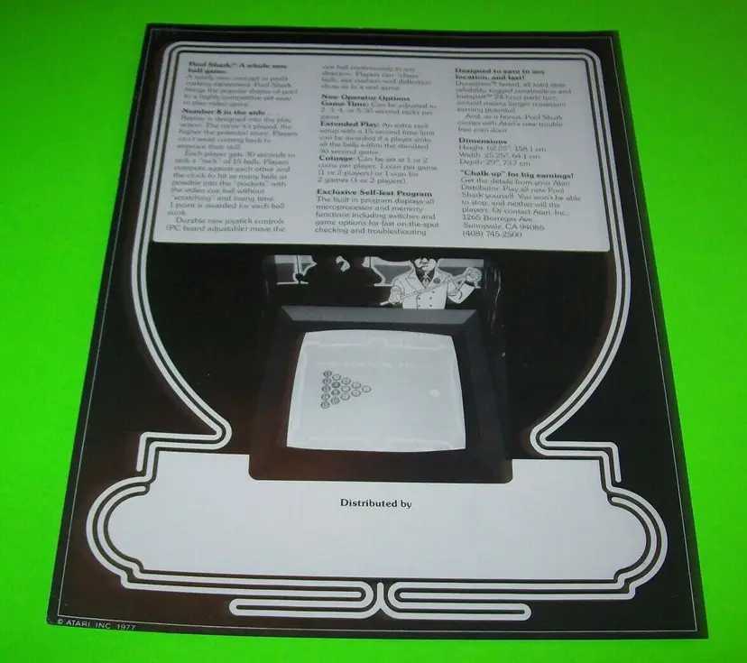 Modified Item: No Country/Region of Manufacture: United States Original/Reproduction: Original Year: 1977 Game Title: Pool Shark Brand: Atari Arcade: Flyer