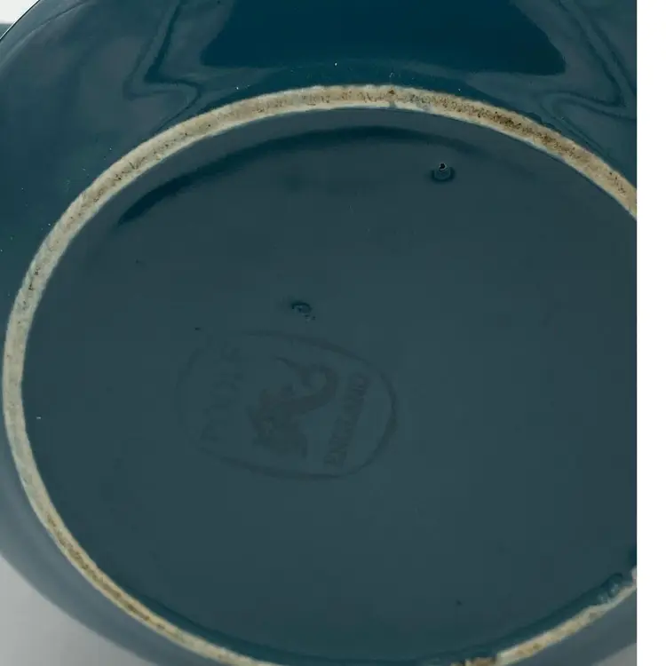 This pot has the greatest mid century style lines, doesn't it? @7.5" tall,in a rich teal blue with white lid. No cracks or chips, seal on the bottom, they call this pattern Blue Moon.