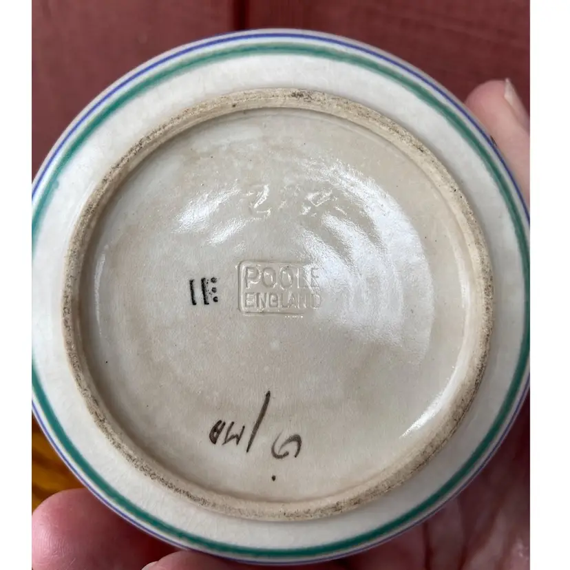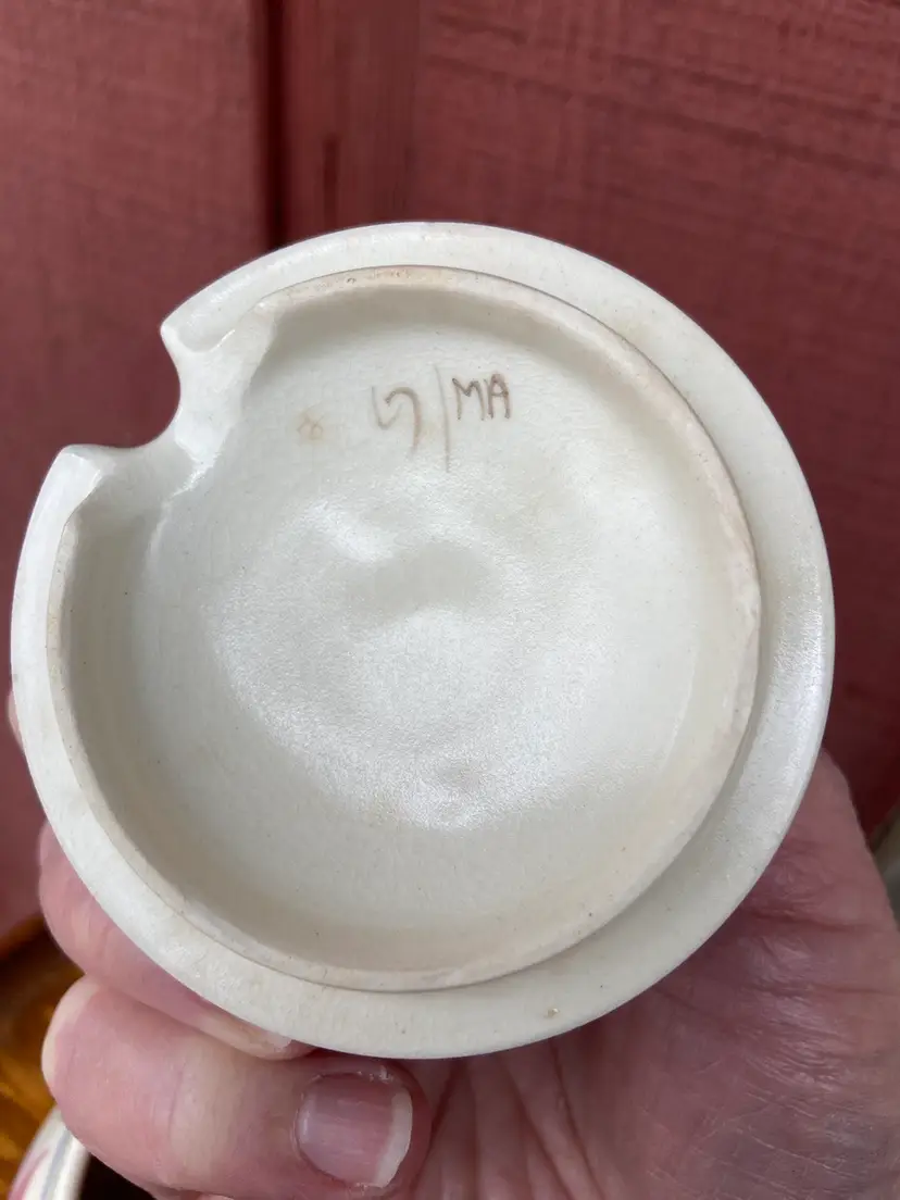 Approx 4”w x 4”h. Pre-used condition. No chips or cracks, slight crazing. Artist signed.
