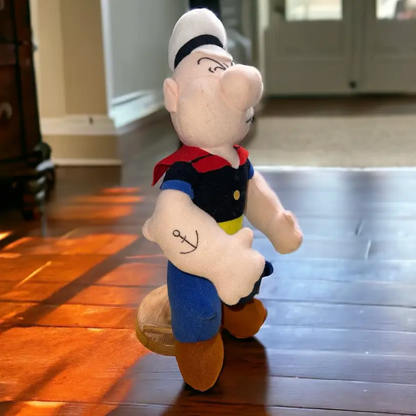 With washable features, this plush doll is easy to clean and maintain. It's suitable for any occasion and has an age level of 3-4 years, 4-7 years, 8-11 years, and 17 years and up. This particular Popeye plushie is part of the character family and was manufactured in 1992, making it a nostalgic piece for those who grew up with the classic cartoon. Buy this stuffed toy as a gift or keep it for yourself and relive the adventures of Popeye The Sailor Man!