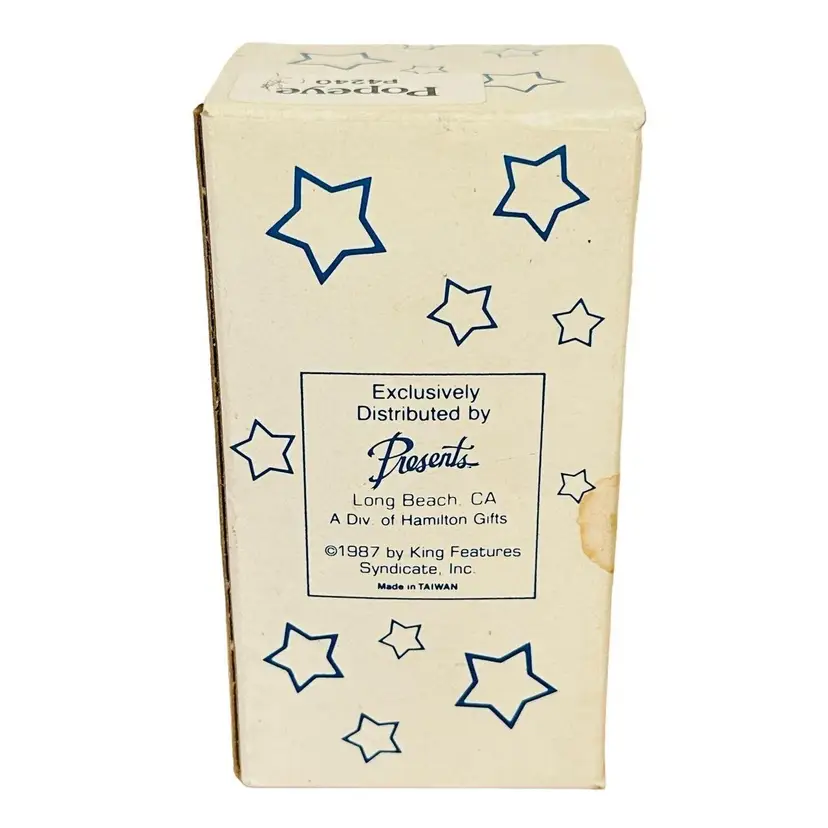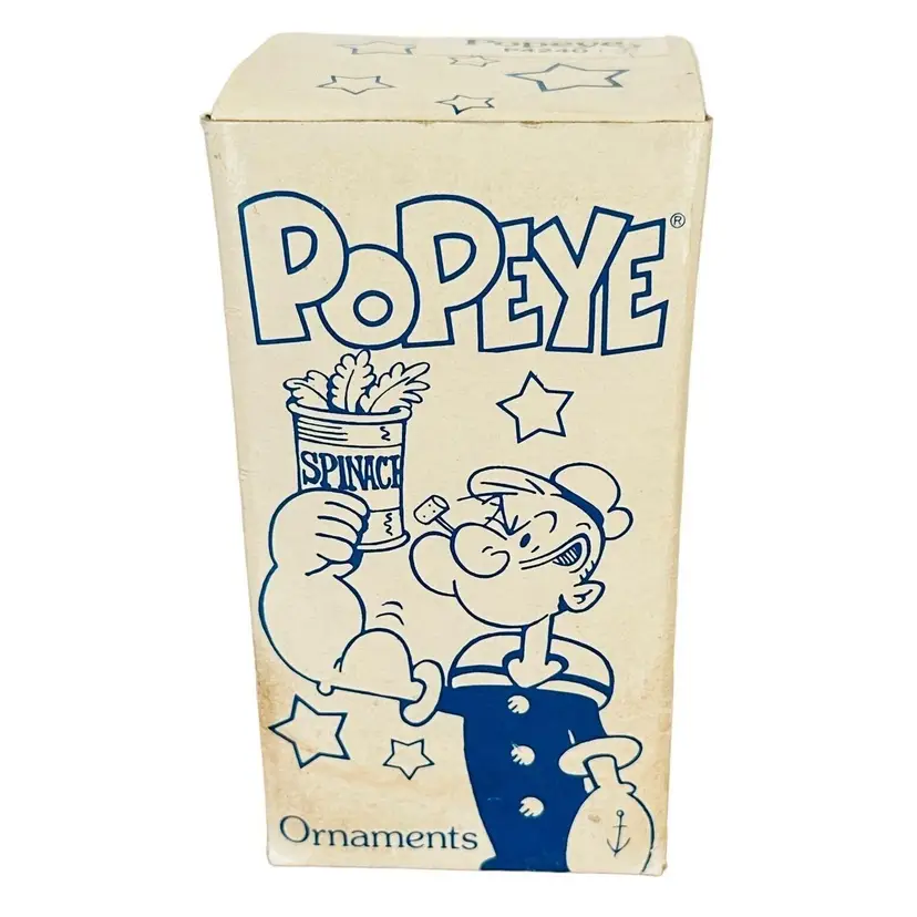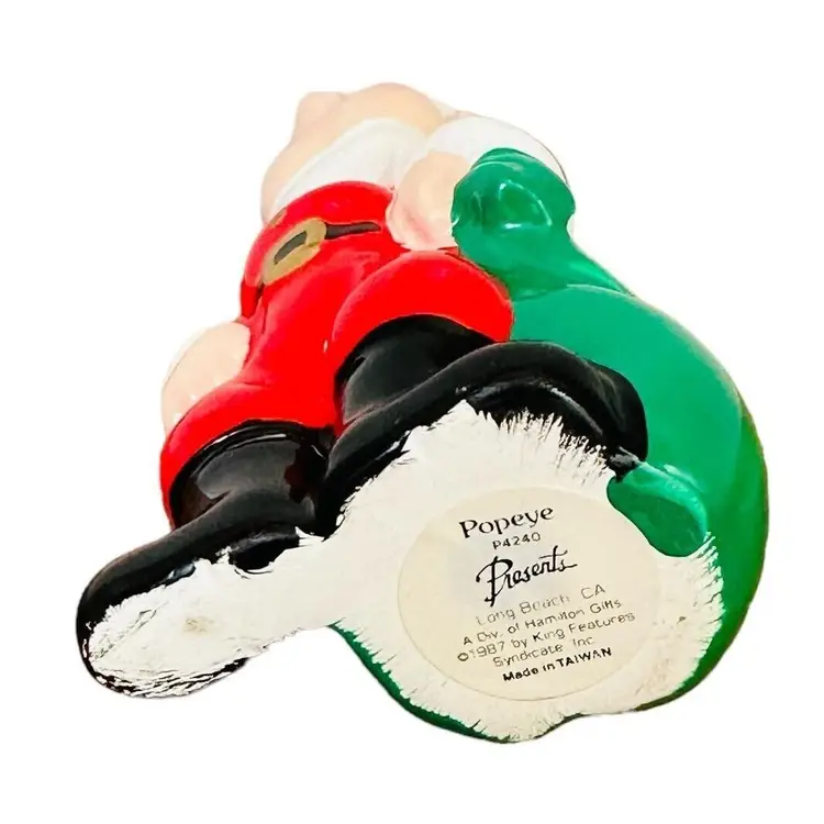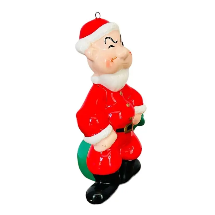This is a POPEYE THE SAILOR MAN SANTA CLAUS CERAMIC CHRISTMAS ORNAMENT (P4240) from 1987 by Presents with the ORIGINAL BOX.
