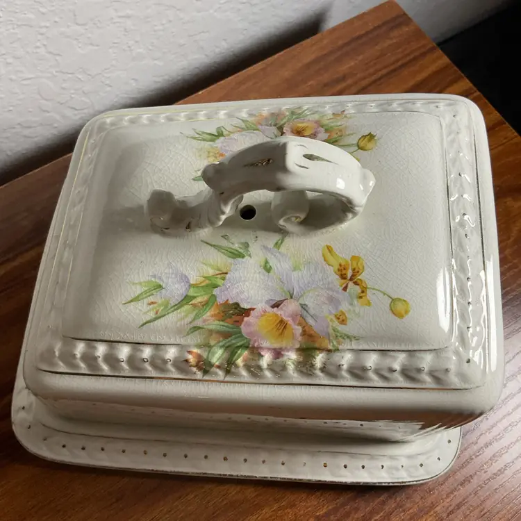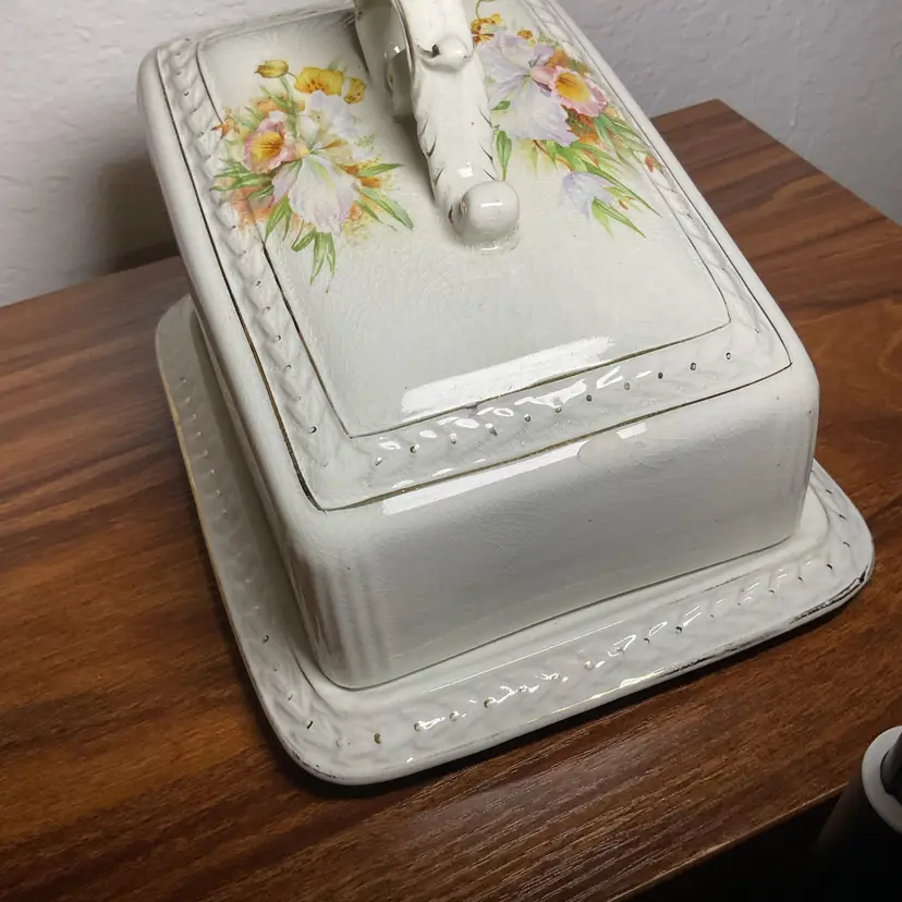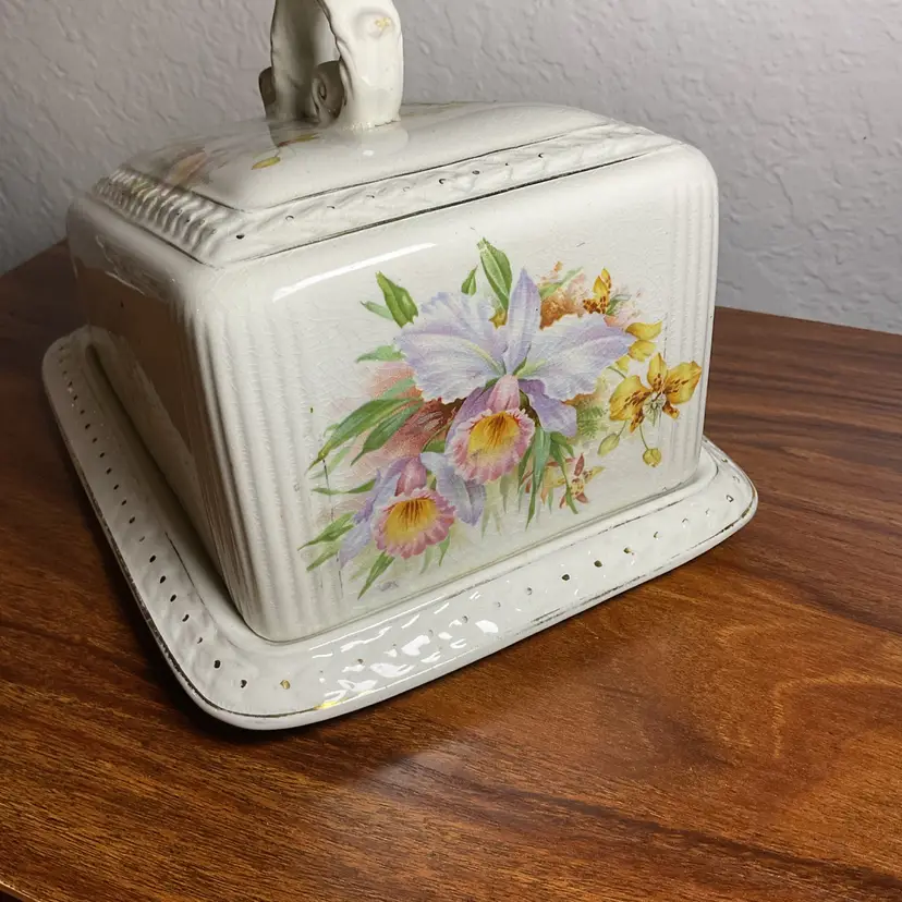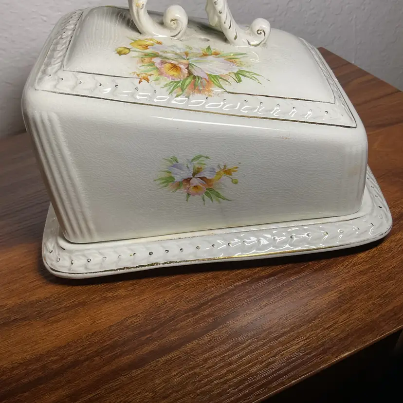 Vintage Victorian Porcelain Cheese Covered Dish Plate.