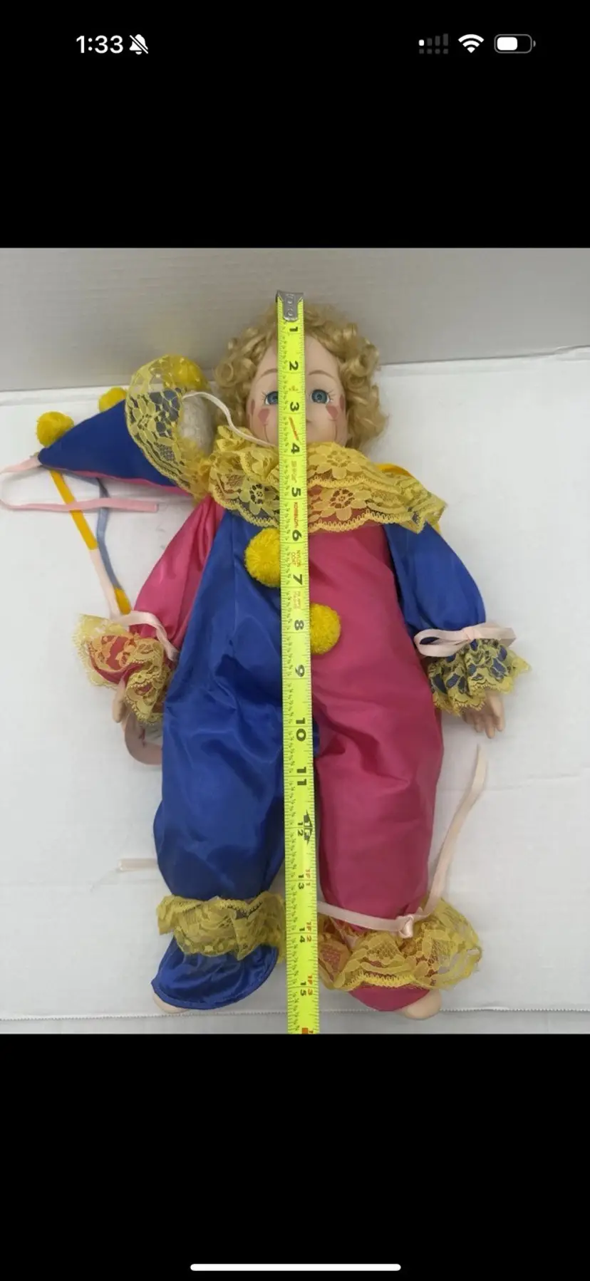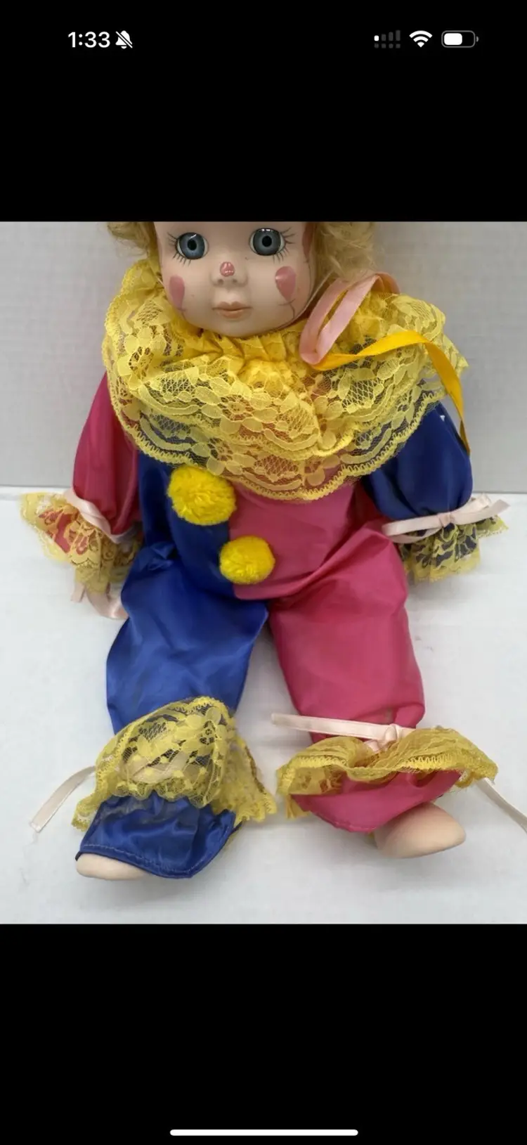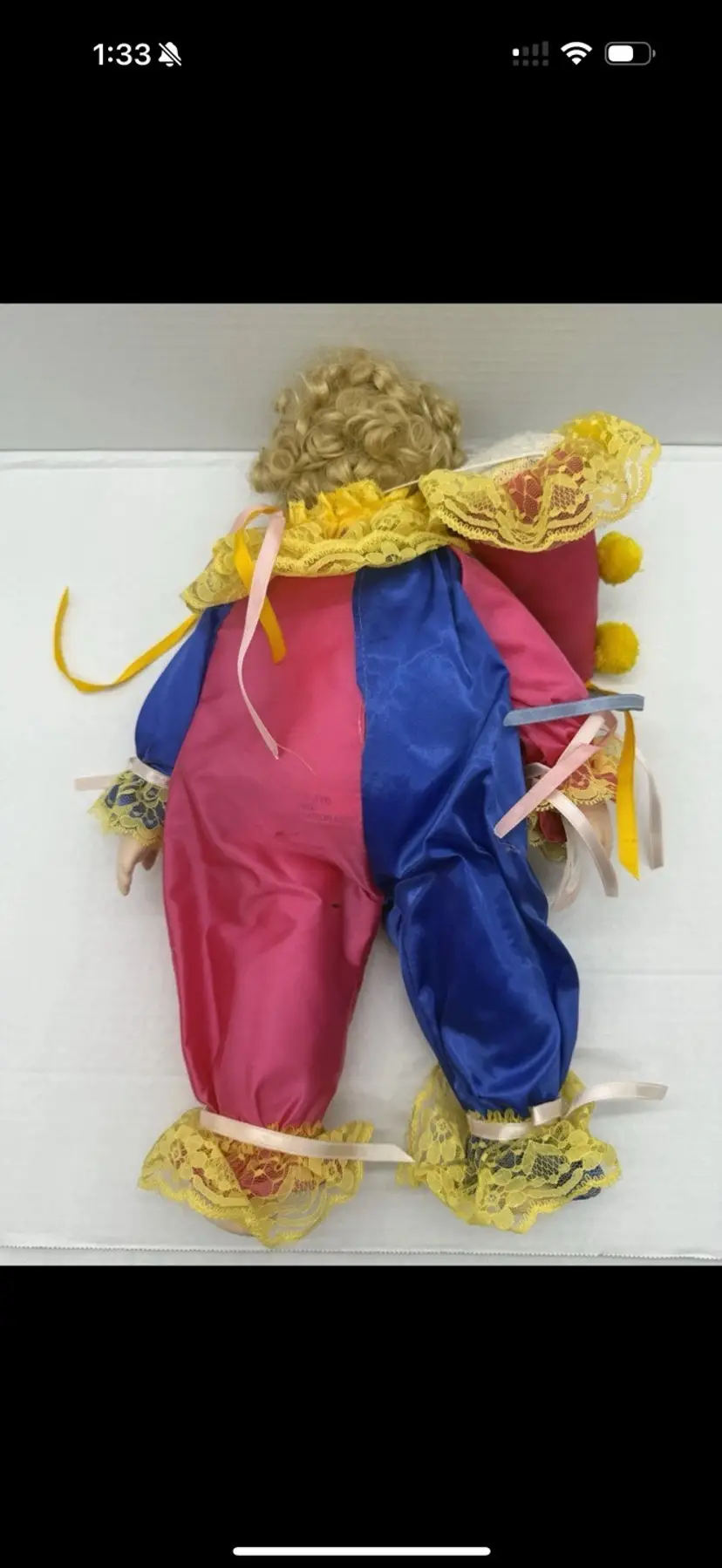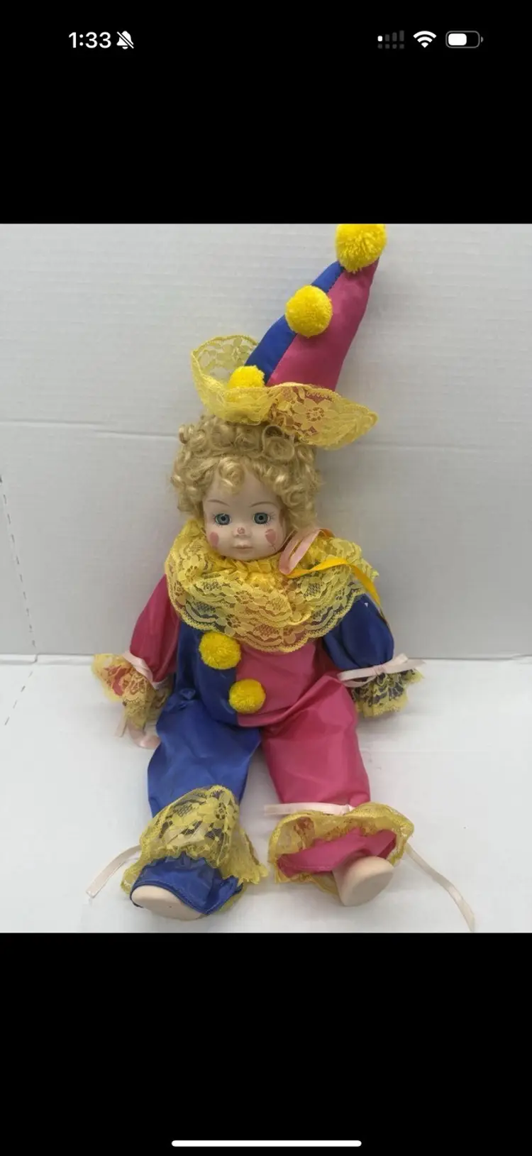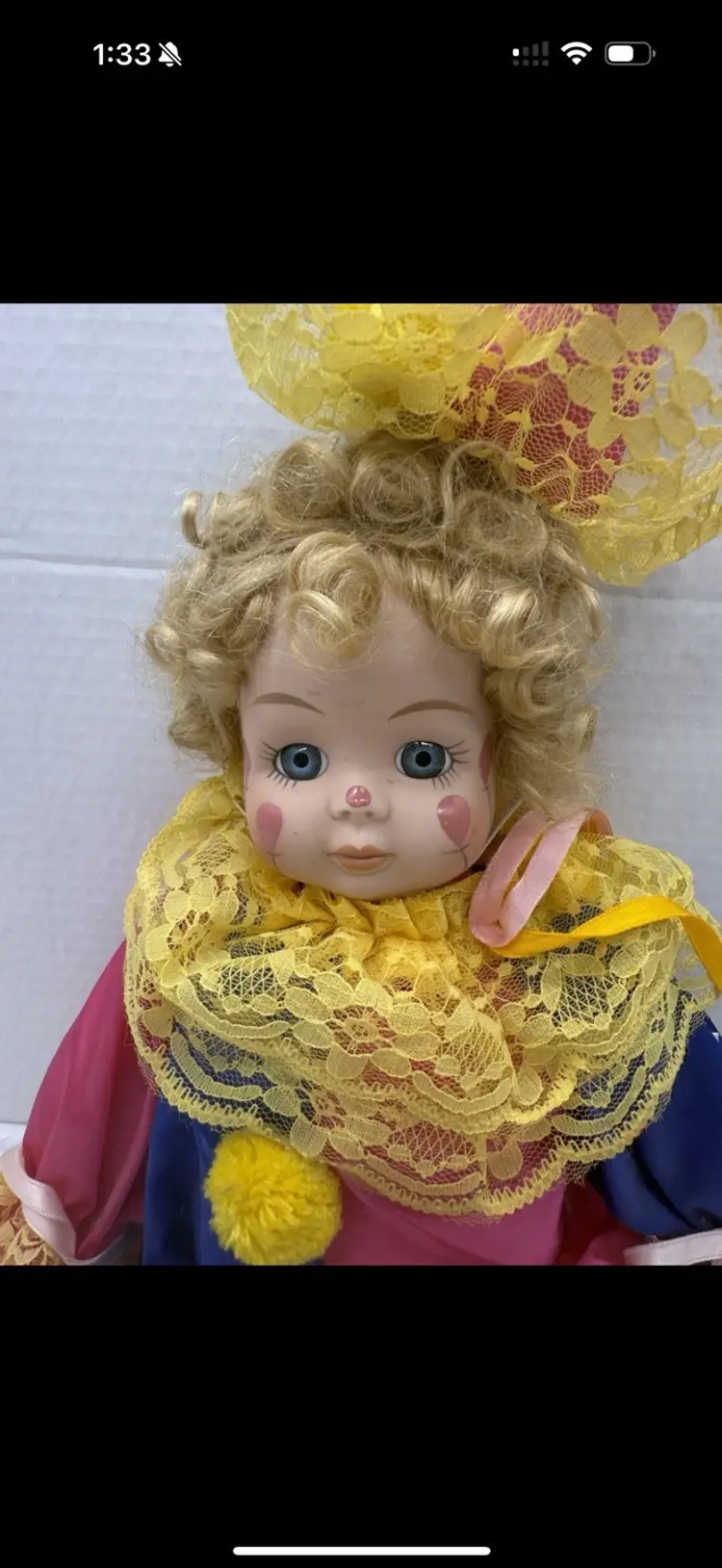 Porcelain Doll "Clown" Exclusive Collectible Memories China With Hat EUC 16”