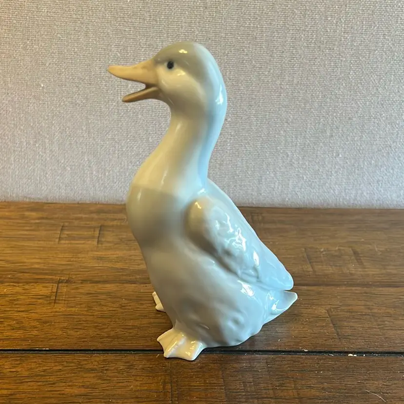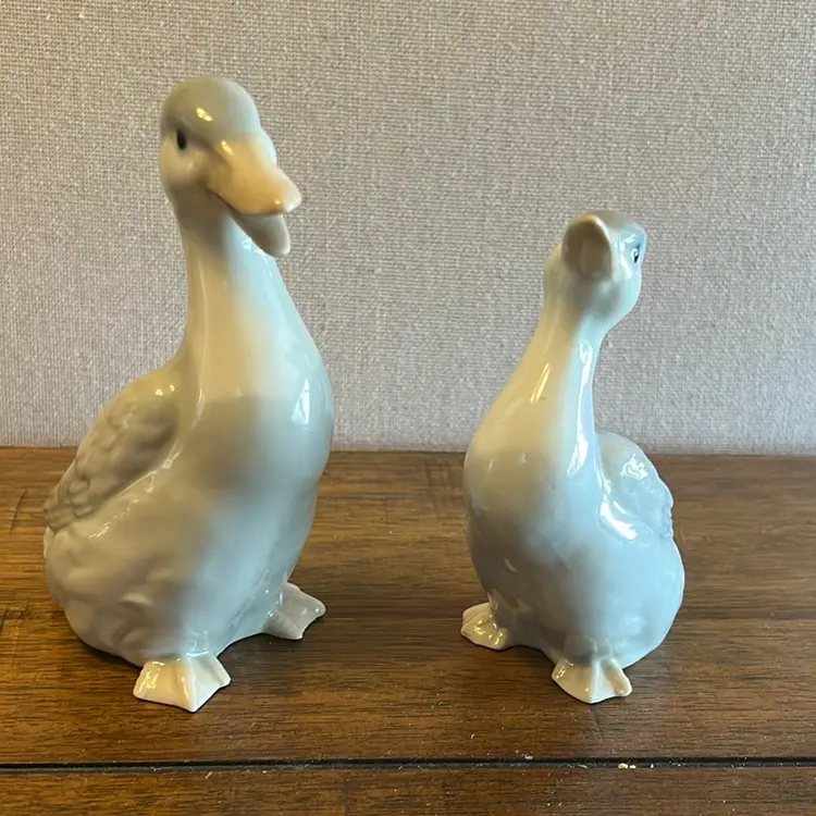 These are 2 porcelain duck figurines. Bigger one is 5 1/2 inches tall and smaller one is 3 1/2 inches tall