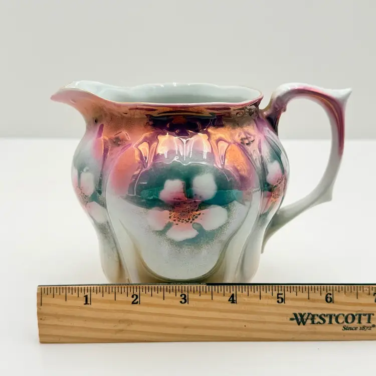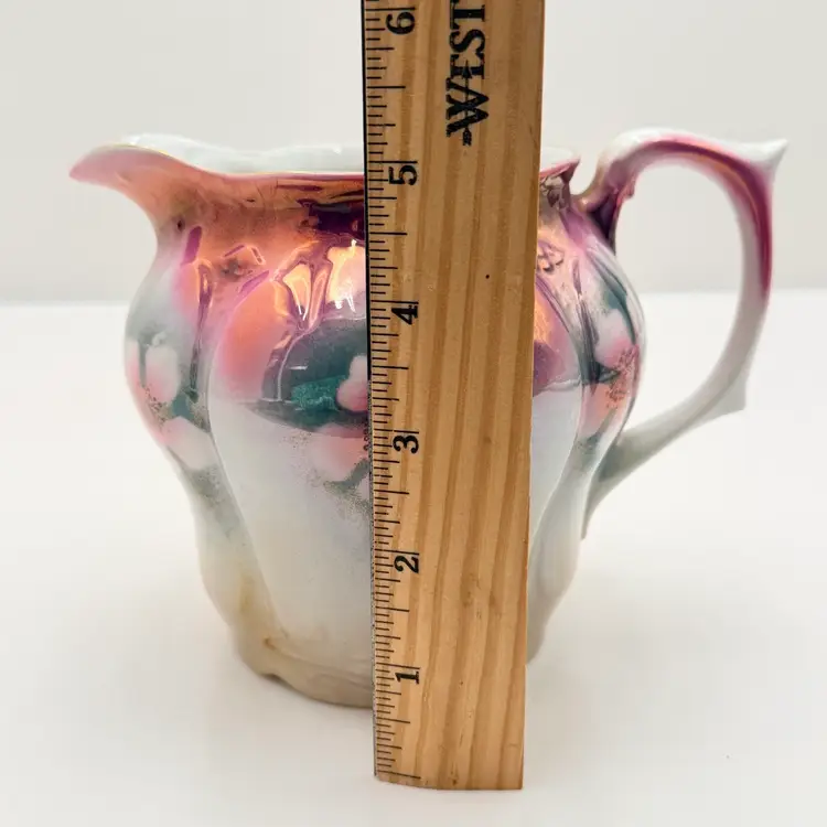 As shown 5 inches tall by 6 inches wide No chips or cracks. Marking to the luster on one side.