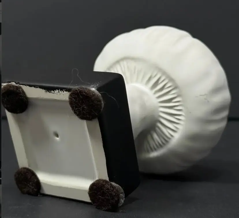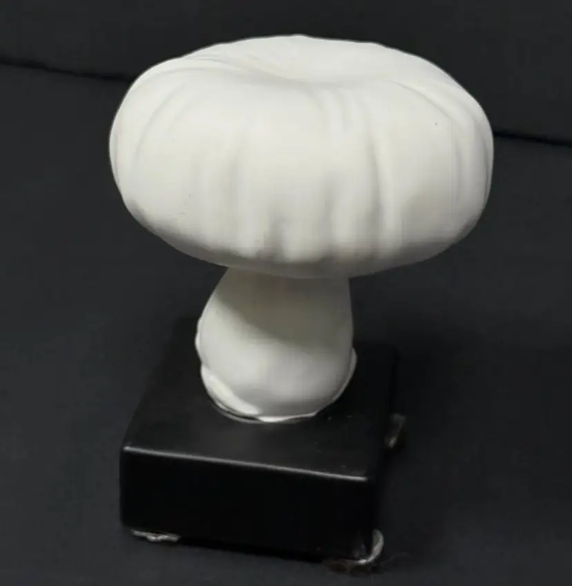 Bisque style white ceramic mushroom with black ceramic base Good condition