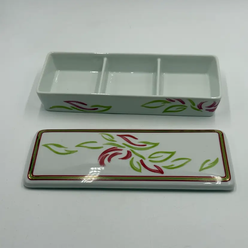 In good condition. Does not have any chips or cracks. Dates to the 1980s. Measures 10 inches long, 4 inches wide and 1 7/8 inches tall.