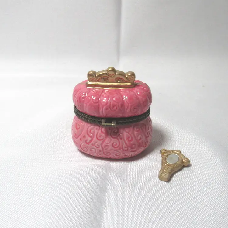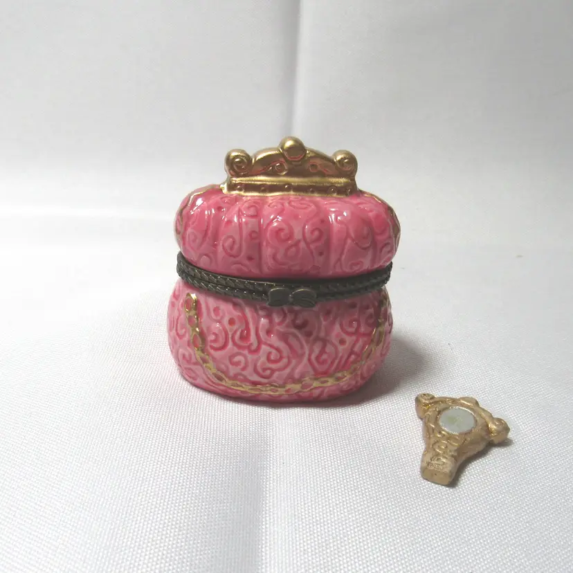 Porcelain Pink Purse Hinged Trinket Box w/ Mirror Trinket New old stock in box 2.5" tall