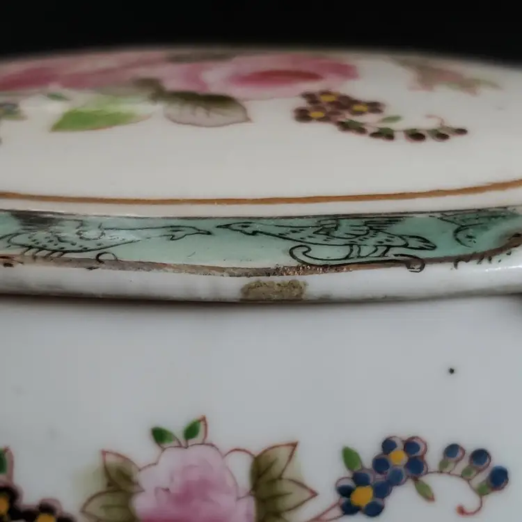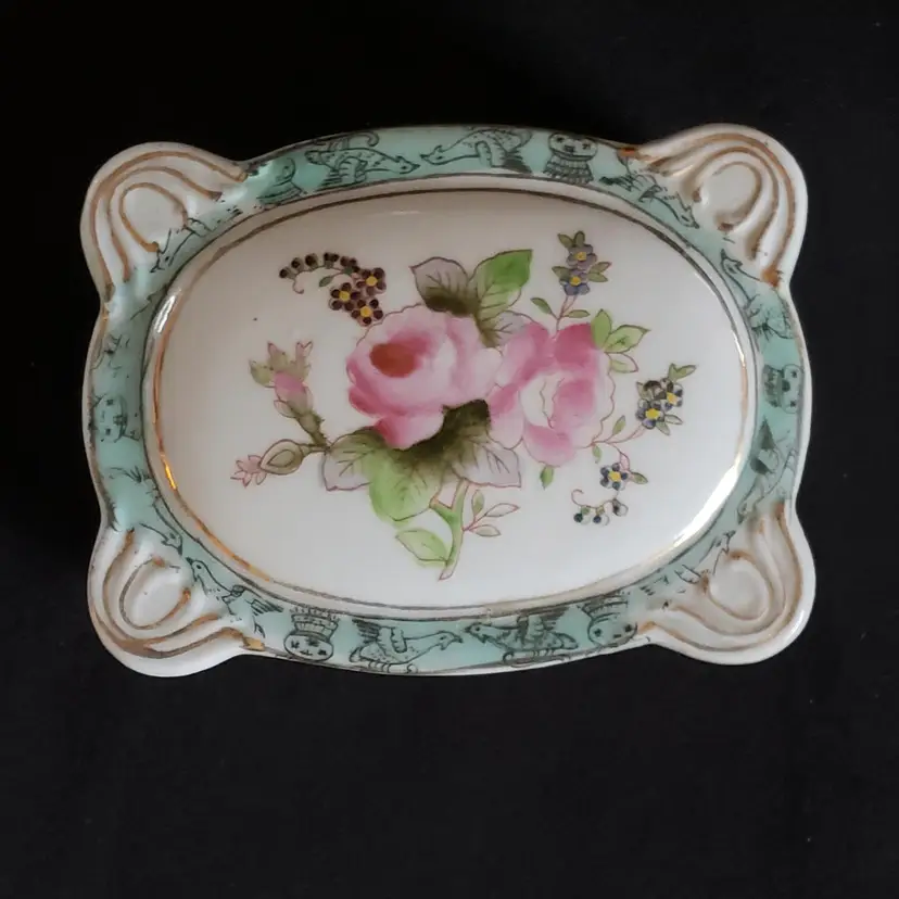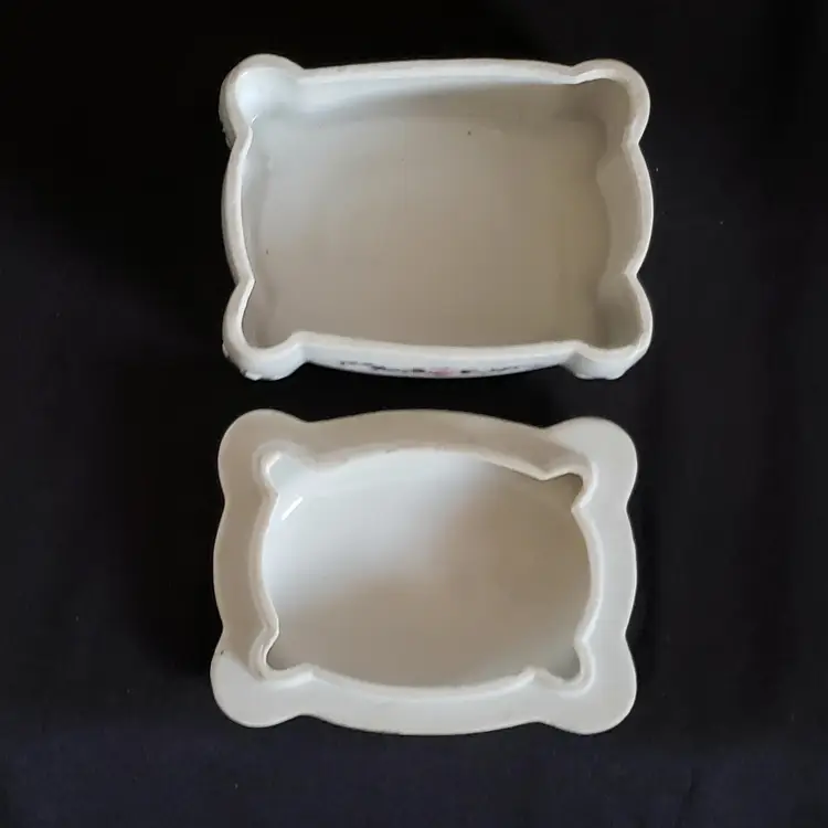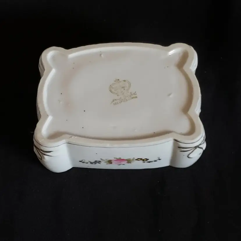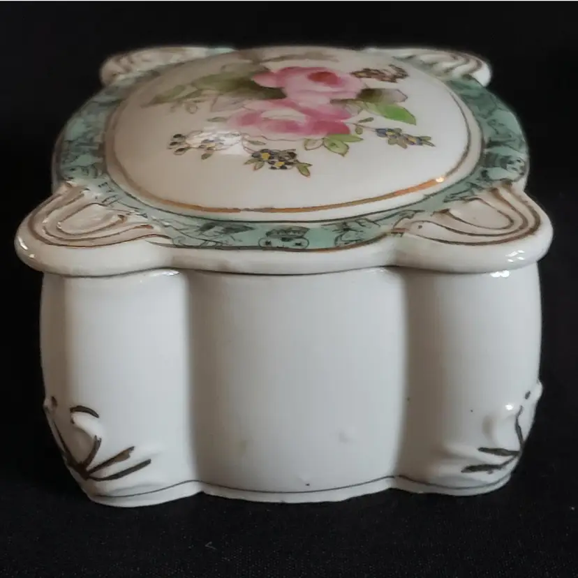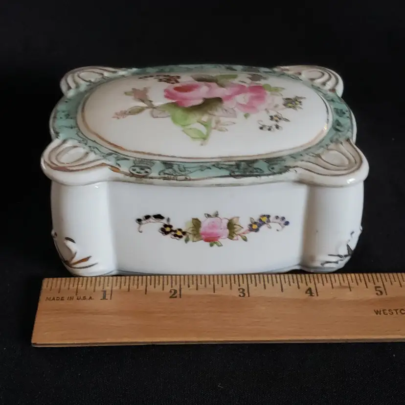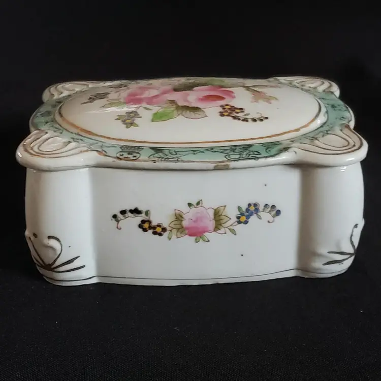 Porcelain Trinket Box Floral Rosetti Chicago Hand Painted Occupied Japan Vintage. Used condition with manufacturer flaws including dirt and bubbles within the glaze, slight bit of edgewear, missing color, sticker residue, etc. Please view all the photos and read the entire item description and please ask any questions prior to purchase when possible.