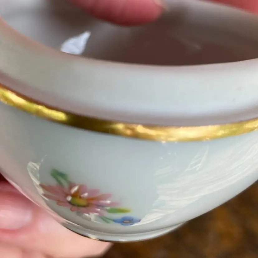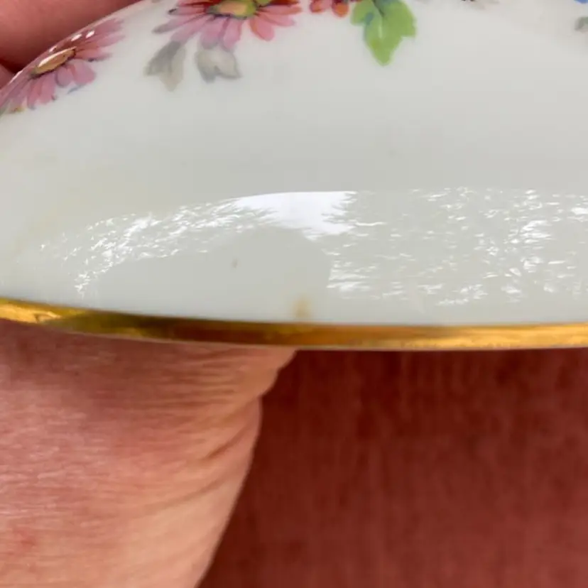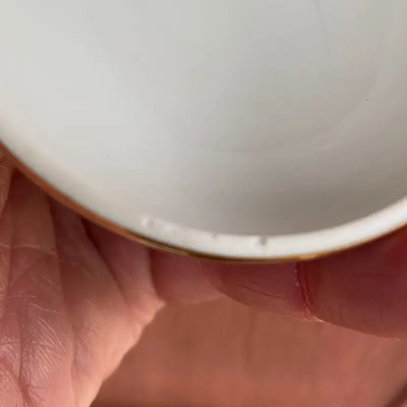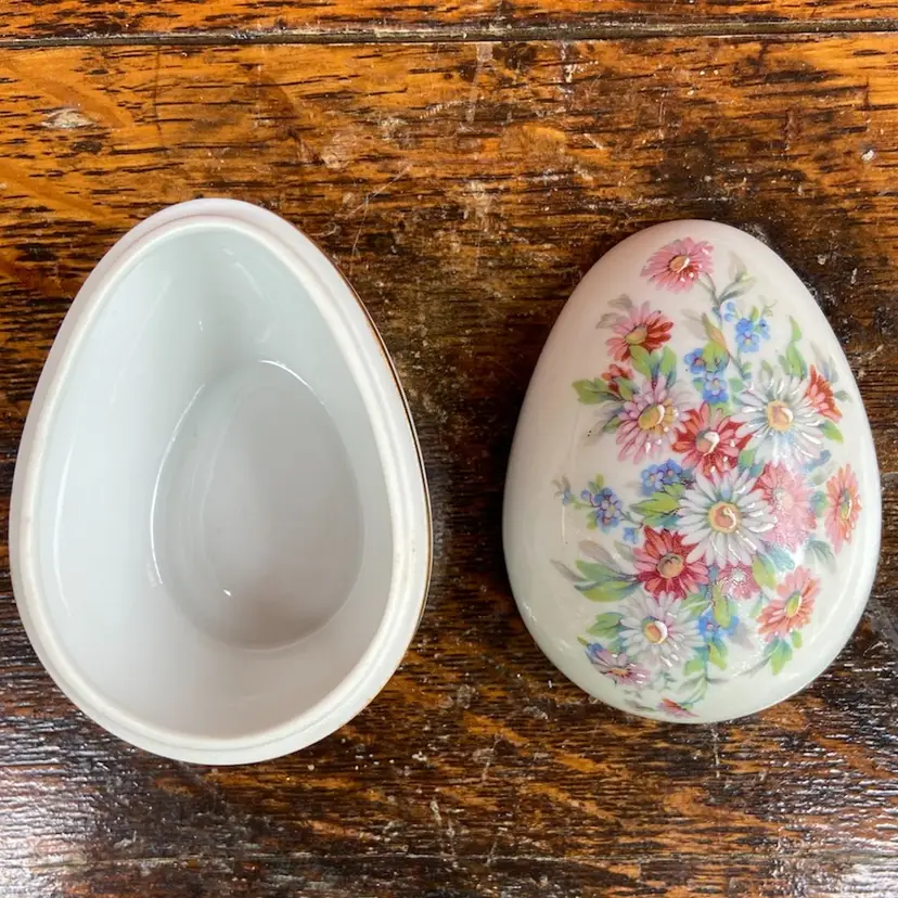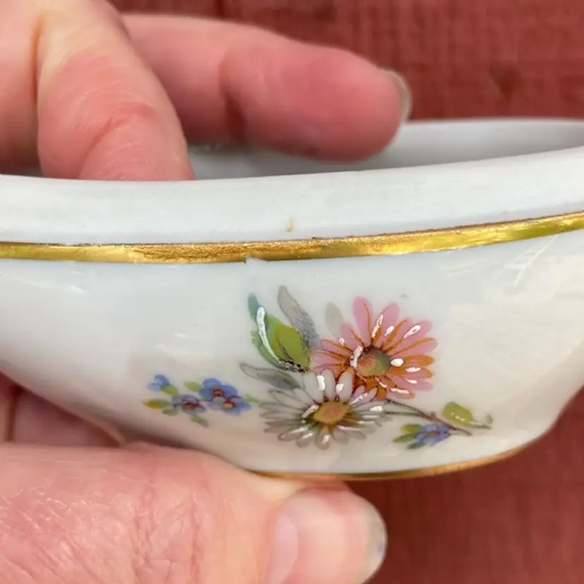 Approx 3.5”l x 2.5”h. Pre-owned. 2 small chips along inside of cover’s lip. See all images as part of description.