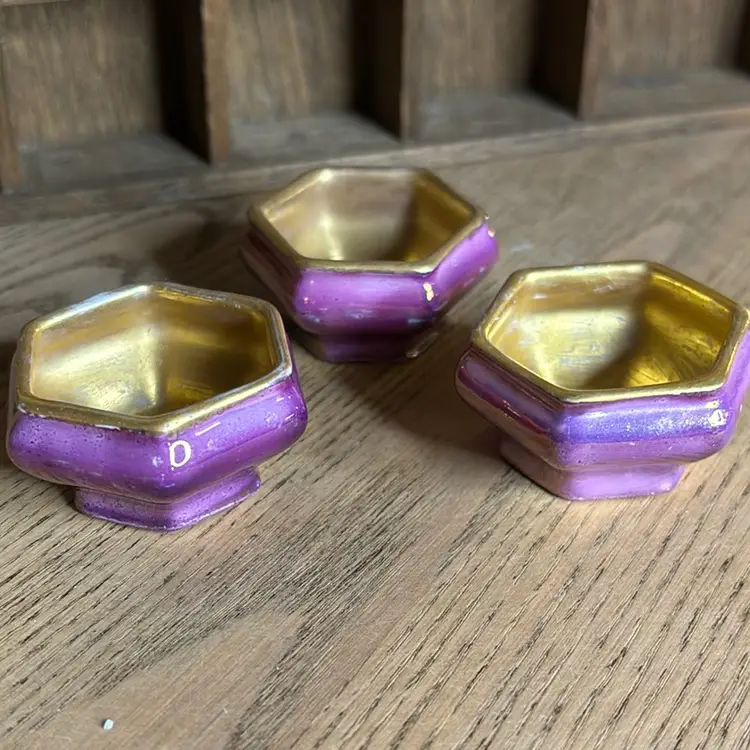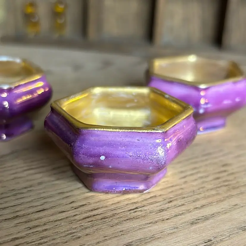 Porcelien Salt Cellers, Purple Glazed, Gold Inner, Made In Vienna