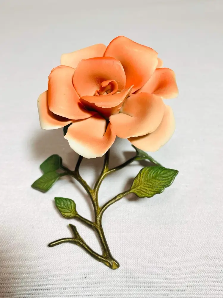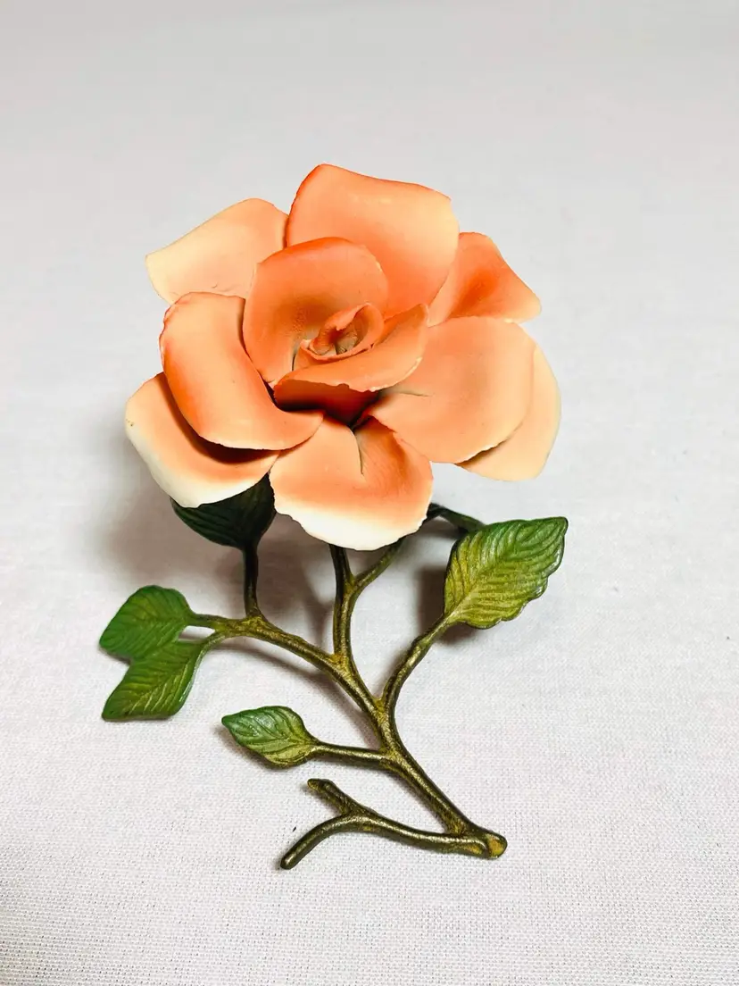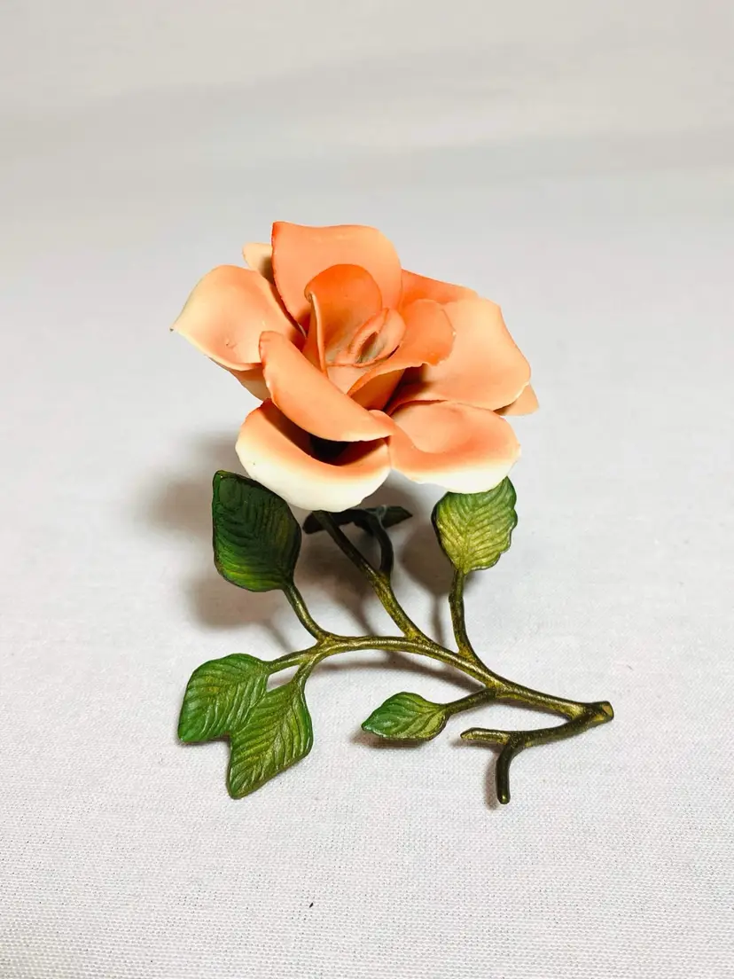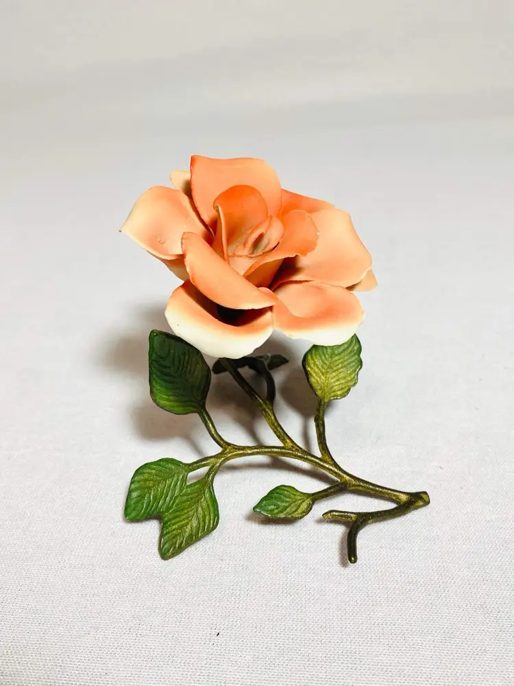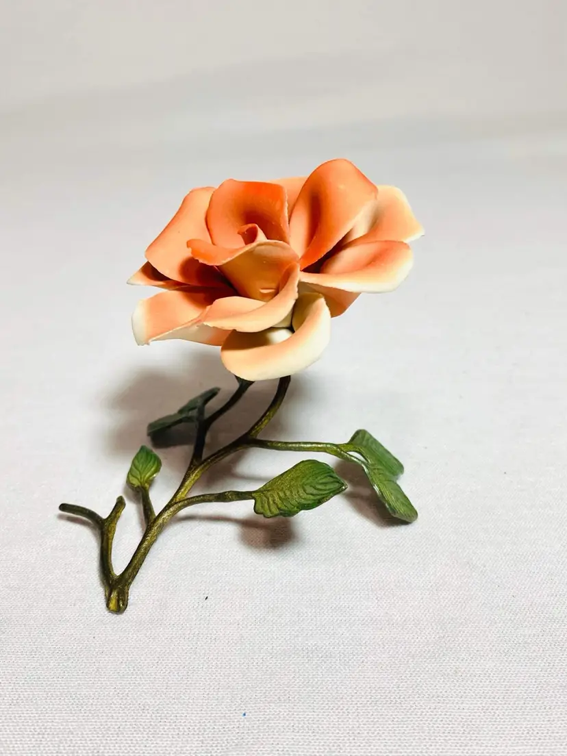 For your Valentine! Gorgeous Porcelain/Porcellane Orange Rose. It stands approximately 3.5” tall, 3” wide and weighs approximately 5 oz. No chips or breaks. Made in Italy. Item #0007-05N