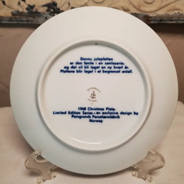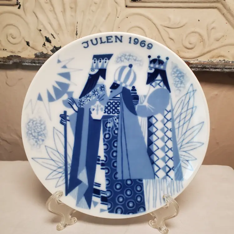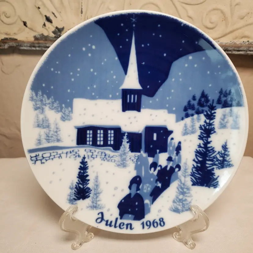 Beautiful Norwegian decorative Christmas plates in blue and white. Approx. 7". In excellent condition. This is a listing for one plate. Choose your preference: