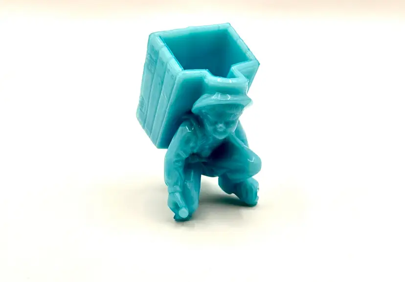 Portieux Vallerysthal Blue Opaline Boy With Basket Kneeling Toothpick Holder. 3”