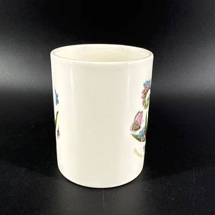 It is 4" tall, measures 3.15" in diameter and has a 12oz capacity. It is in excellent condition. There are no cracks, breaks, chips or repairs. (See photos).