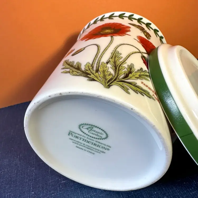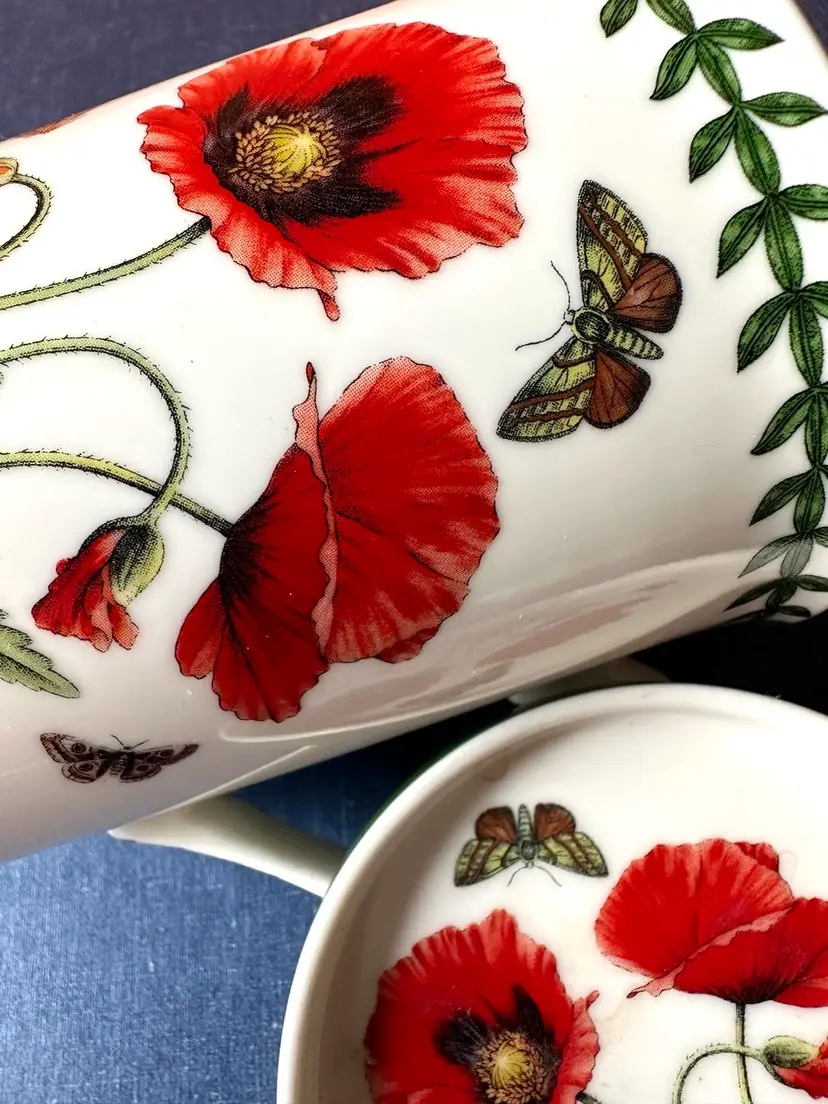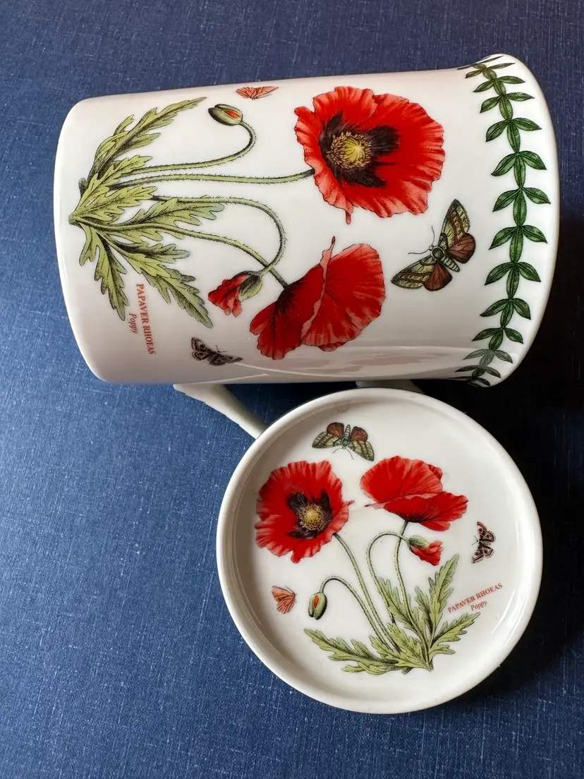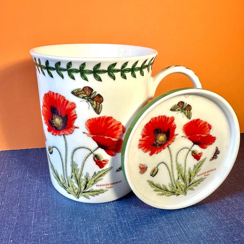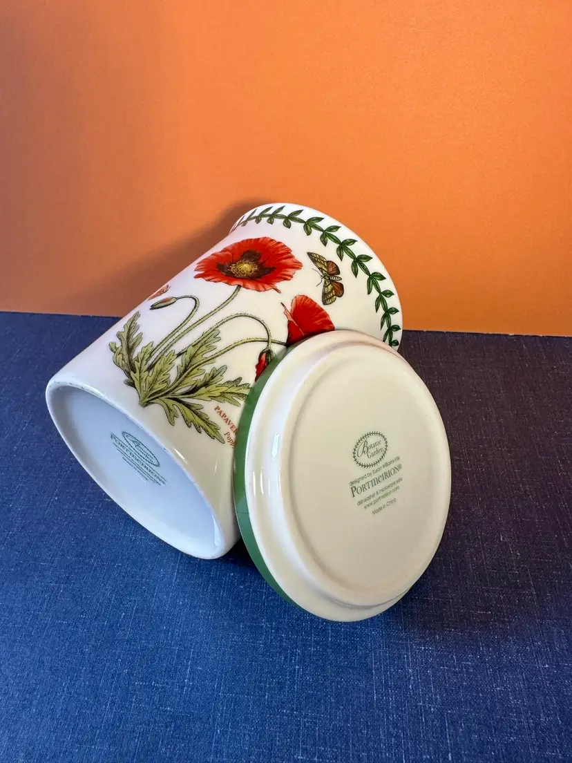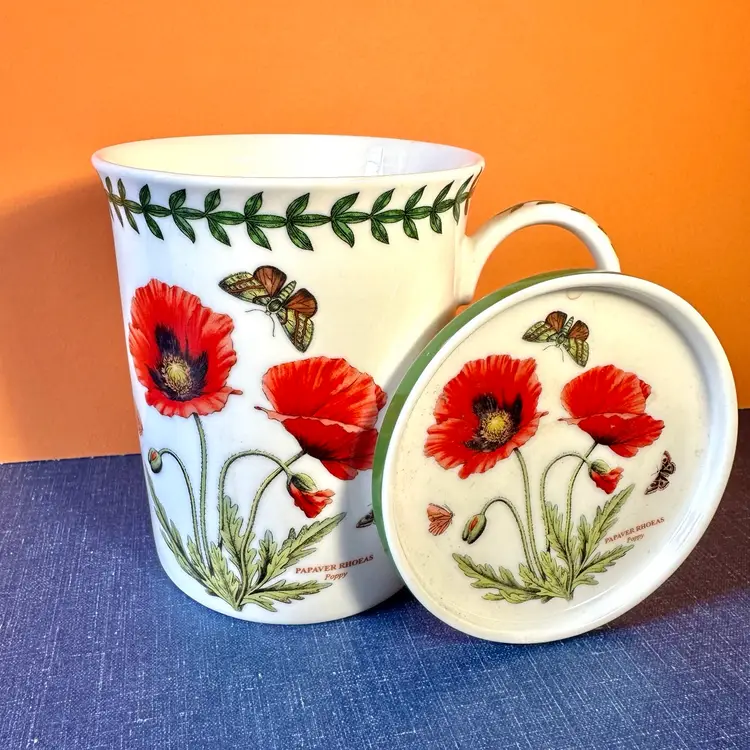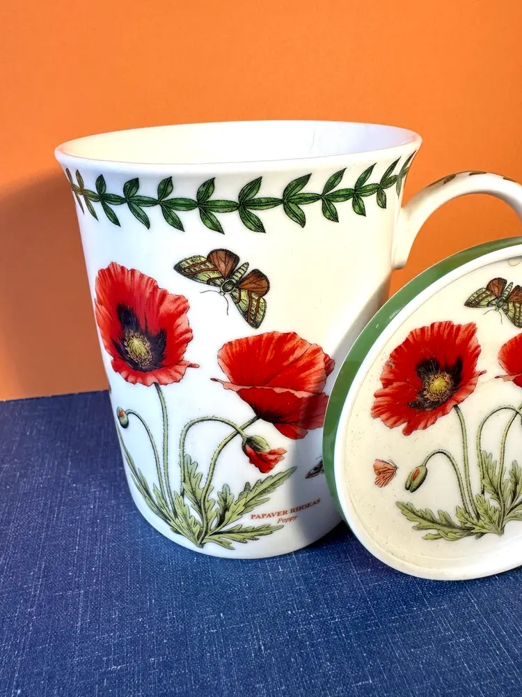 In great no issue condition a Portmeirion labeled lid and cup decorated with poppies and butterflies front back and top🍒