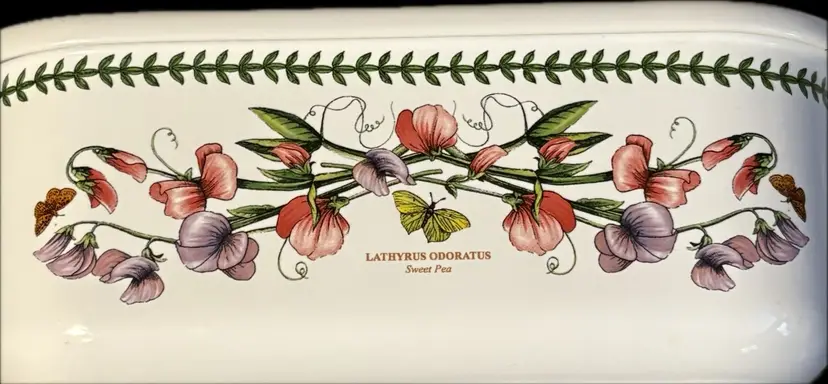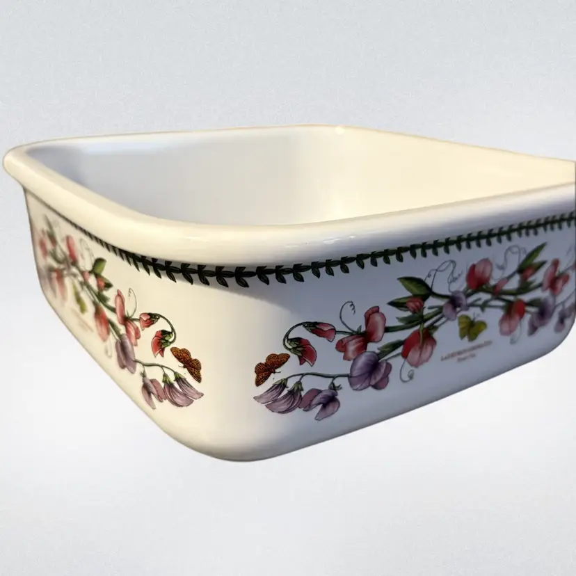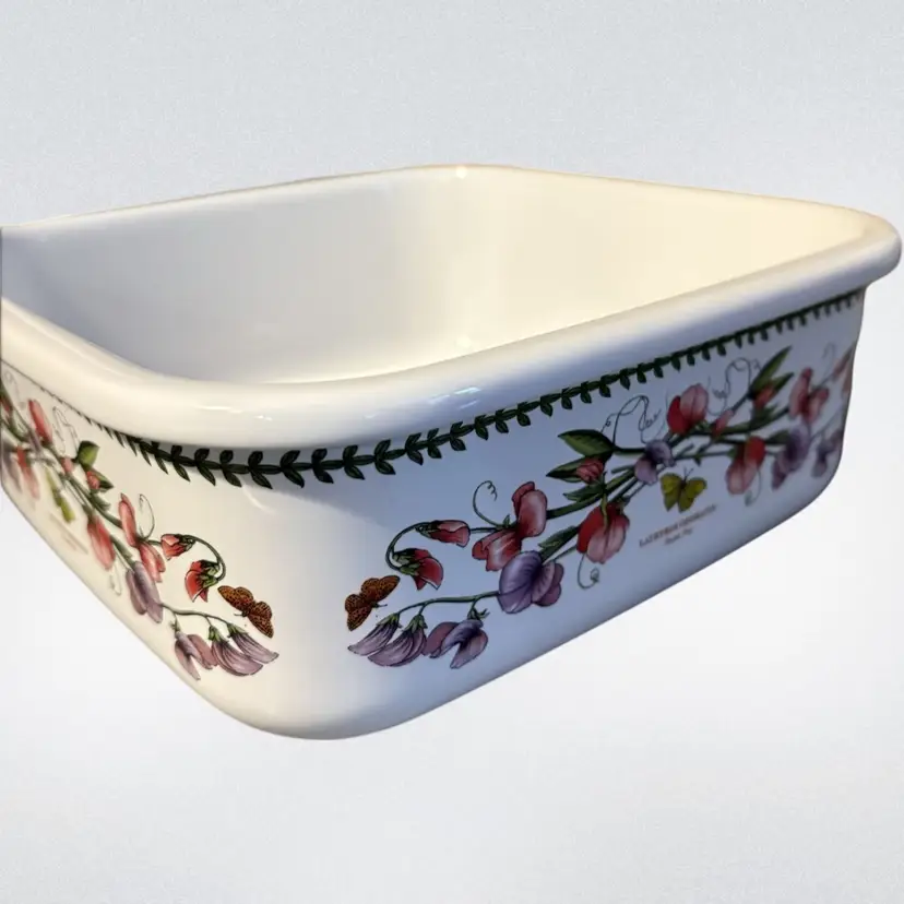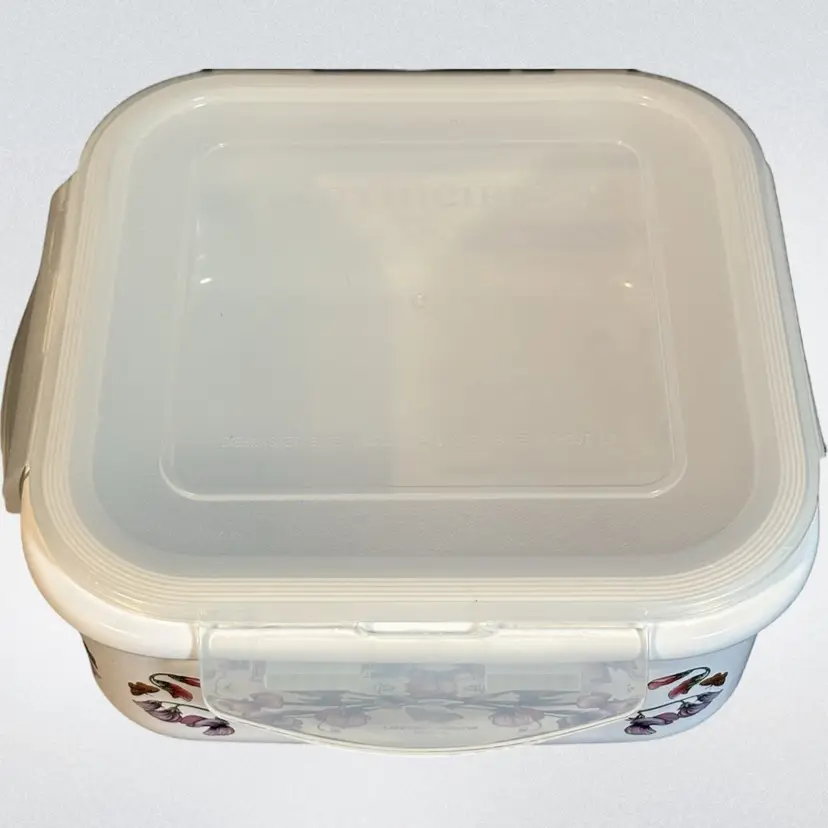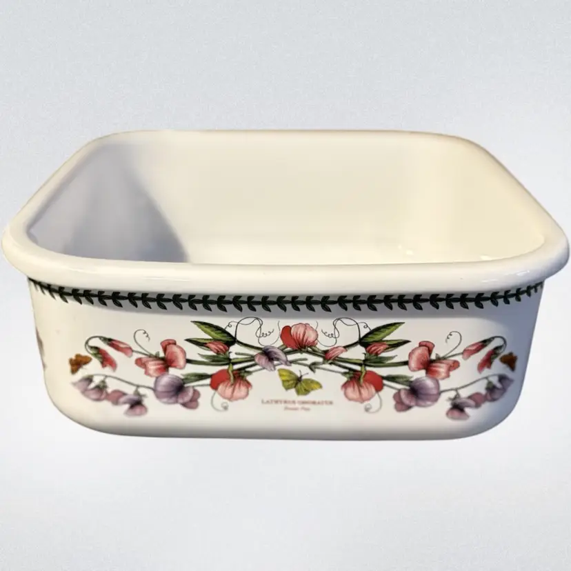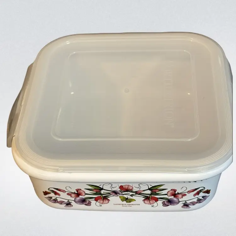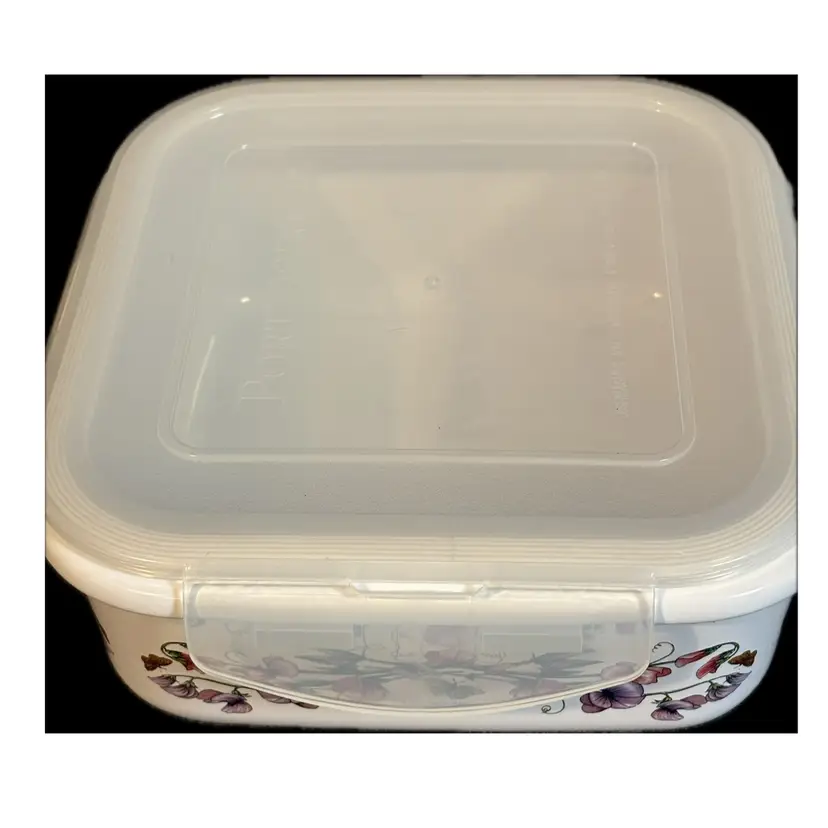 Portmeirion Sweet Pea ceramic square storage bowl with plastic lid