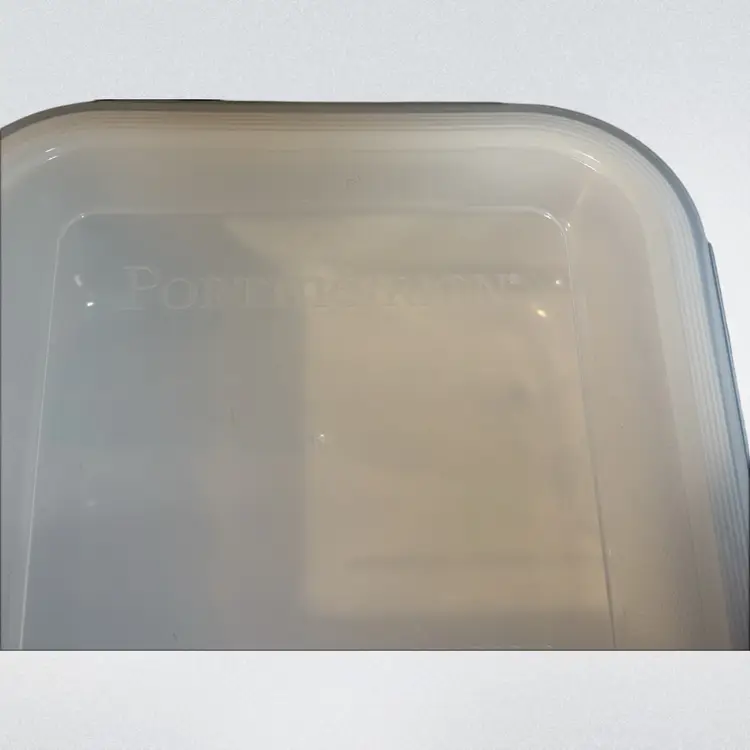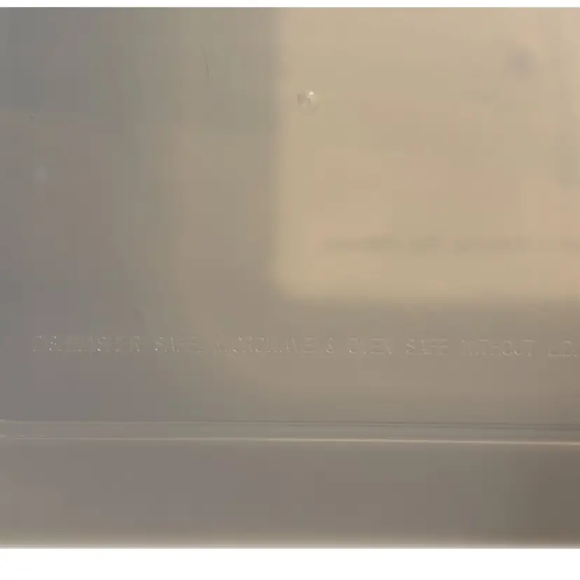 Lid has one hinge missing but doesn’t appear to compromise food storage functionality.