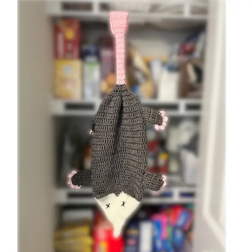 Add a touch of whimsy to your kitchen with this adorable crochet possum plastic bag holder. It's the paw-fect storage solution!