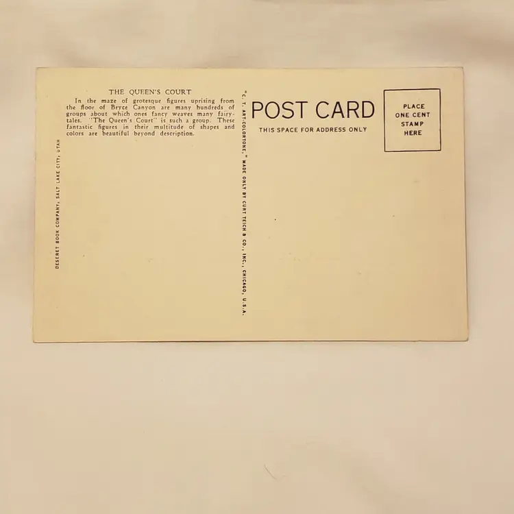City/Region: Bryce Canyon Postmark: None Material: Paper Publisher: Colortone Original/Licensed Reprint: Original Brand/Publisher: Curt Teich Subject: Bryce Canyon National Park Type: Linen Postcard Era: Real Photo (1900-Now) State: Utah Theme: National Park Region: Utah Country: USA Features: Linen Country/Region of Manufacture: United States Postage Condition: Unposted