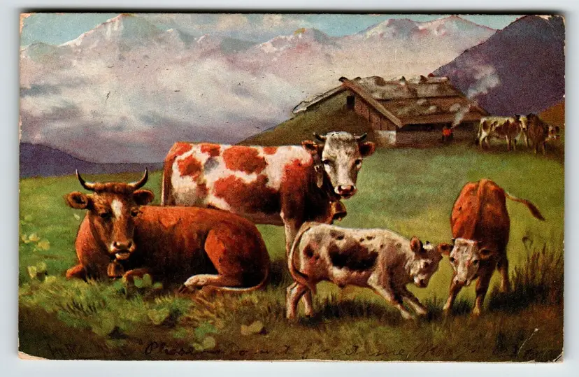 Number of Items in Set: 1 Unit of Sale: Single Unit Artist: Unknown Occasion: Greetings Size: Standard (5.5 x 3.5 in) Custom Bundle: No Year Manufactured: 1907 Material: Paper Original/Licensed Reprint: Original Franchise: None Brand/Publisher: HKM Subject: Cows Personalize: No Type: Printed (Lithograph) Era: Divided Back (1907-1915) Theme: Animals Features: Divided Back Time Period Manufactured: 1900-1919 Country/Region of Manufacture: Germany Postage Condition: Posted
