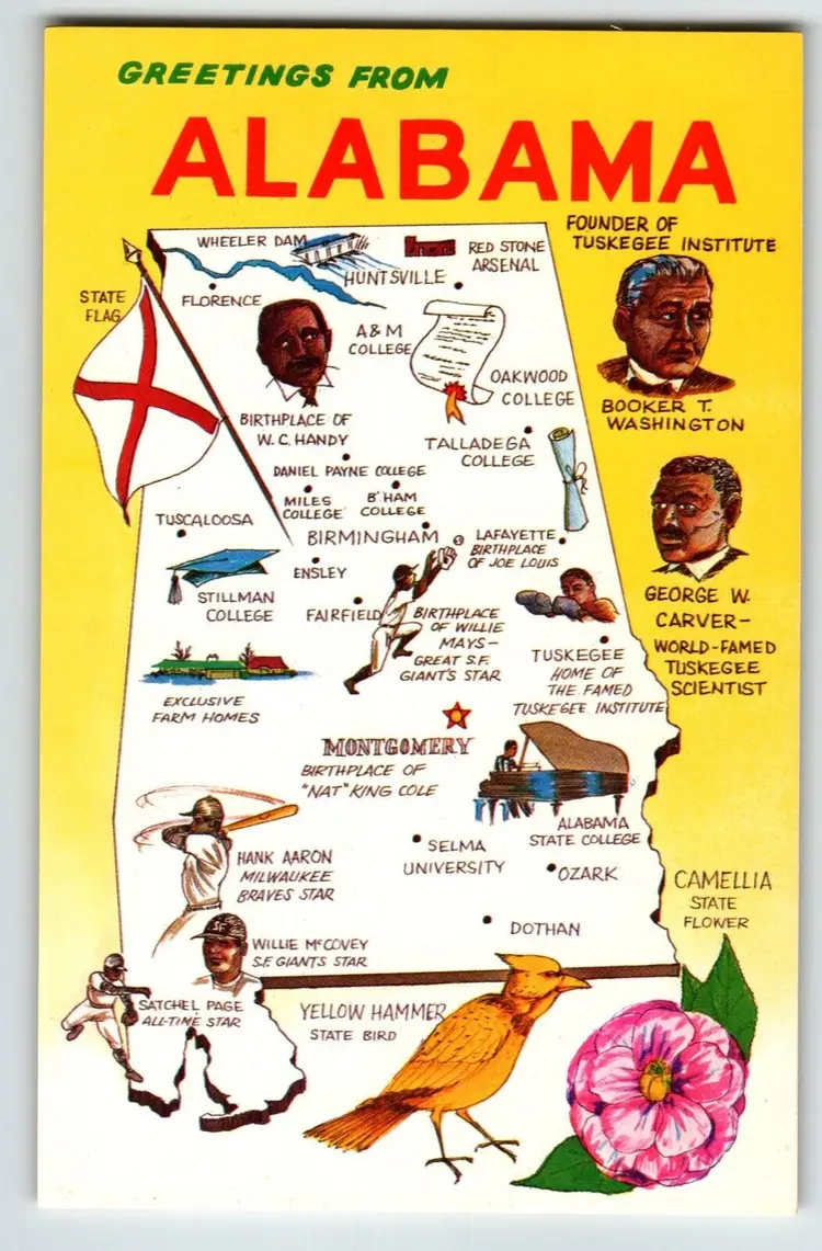 Number of Items in Set: 1 Unit of Sale: Single Unit Artist: Unknown Occasion: Sayings & Quotes Size: Standard (5.5 x 3.5 in) Signed: No Custom Bundle: No Year Manufactured: 1969 Material: Paper City: Multi Original/Licensed Reprint: Original Franchise: None Brand/Publisher: Colourpicture Subject: Map Postcard Continent: North America Type: Printed (Lithograph) Era: Photochrome (1939-Now) Region: Alabama Country: United States Theme: State Maps Features: Chrome Time Period Manufactured: 1960-1969 Country/Region of Manufacture: United States Postage Condition: Unposted