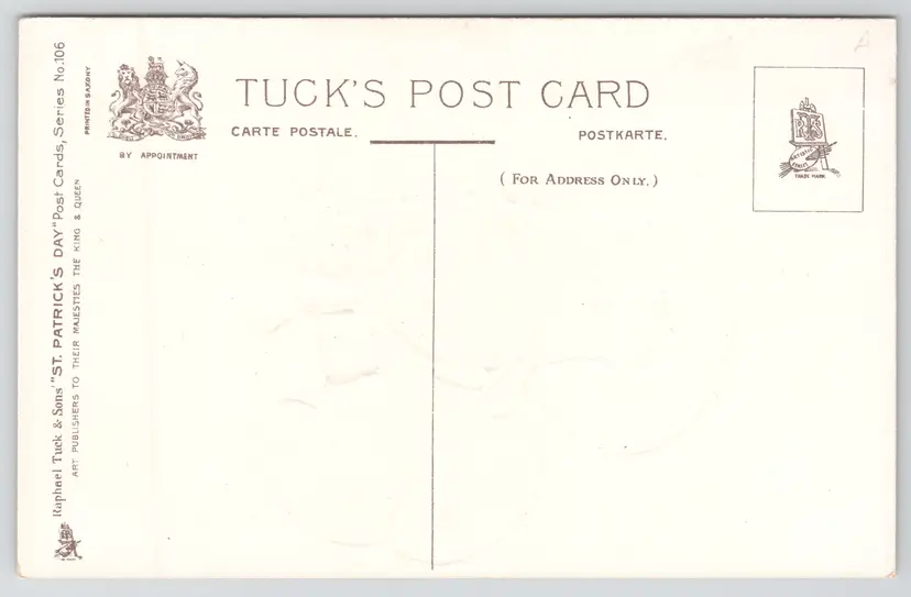 Postcard St Patrick’s Day Raphael Tuck Leprechaun Shamrock Irish Greeting - 21987