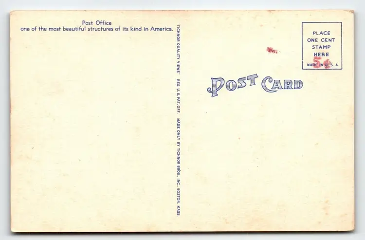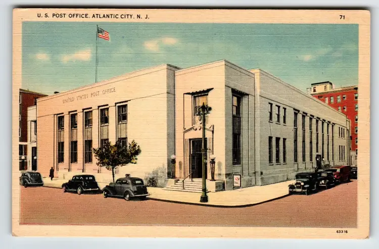 Number of Items in Set: 1 Unit of Sale: Single Unit Artist: Unknown Size: Standard (5.5 x 3.5 in) Signed: No Custom Bundle: No Material: Paper Year Manufactured: 1943 City: Atlantic City Original/Licensed Reprint: Original Brand/Publisher: Tichnor Brothers Subject: Post Office Continent: North America Type: Linen Postcard Era: Linen (1930-1945) Region: New Jersey Country: USA Theme: Cities & Towns Features: Divided Back Time Period Manufactured: 1940-1949 Country/Region of Manufacture: United States Postage Condition: Unposted