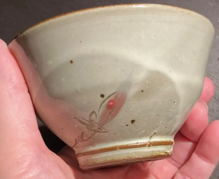 No condition issues. Dimensions: 4" at the top and 1 3/4" diameter at the base, 2" tall.