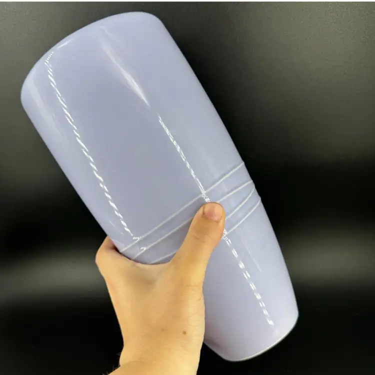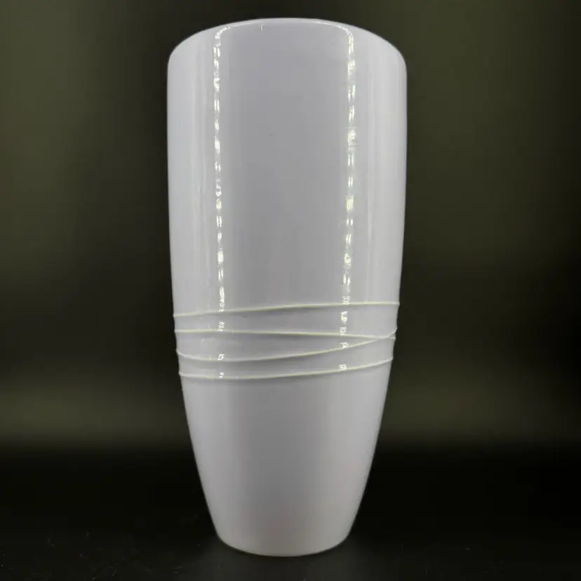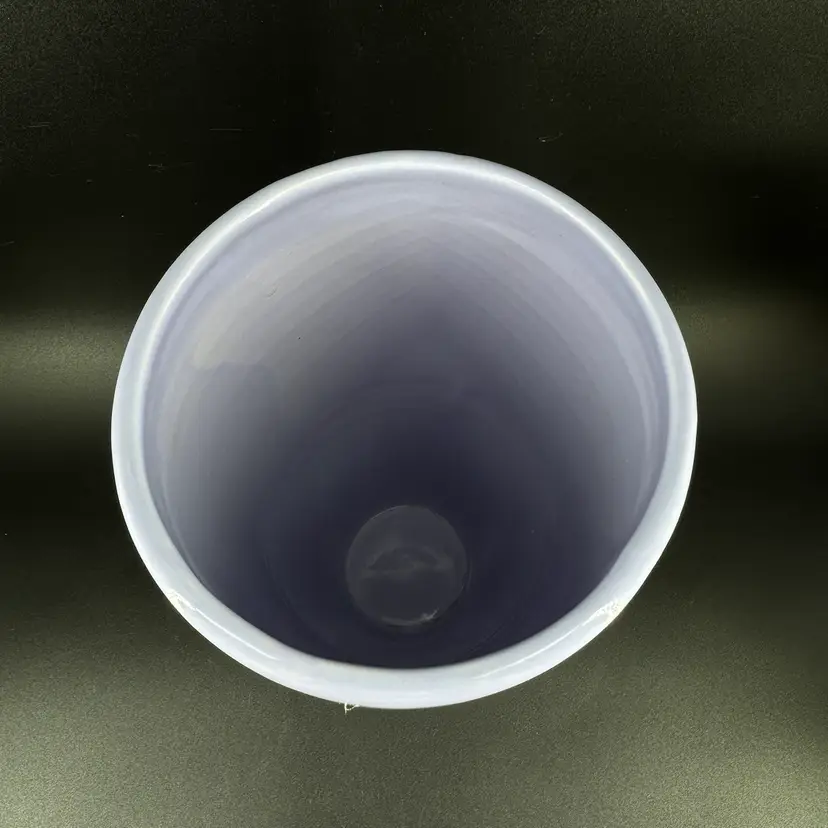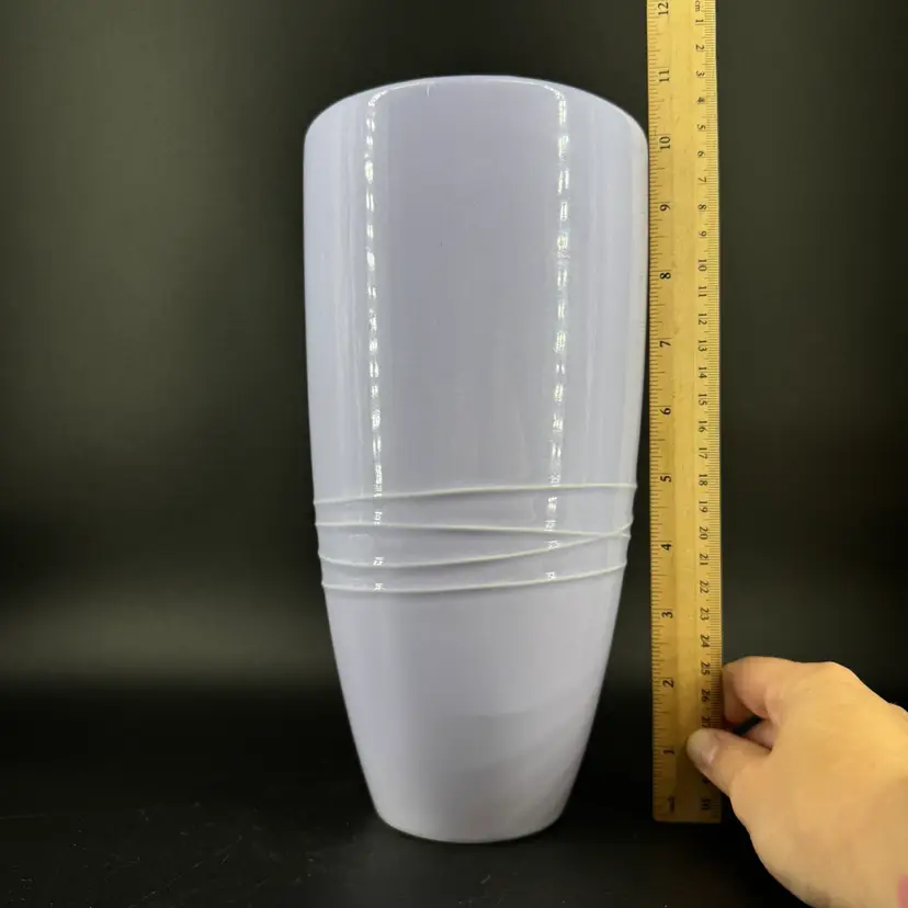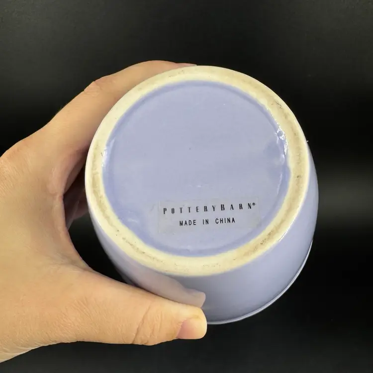 This pottery barn lavender purple vase the height is approximately 10”. There are no chips or cracks. It is marked “Pottery Barn Made In China” on the bottom as well.