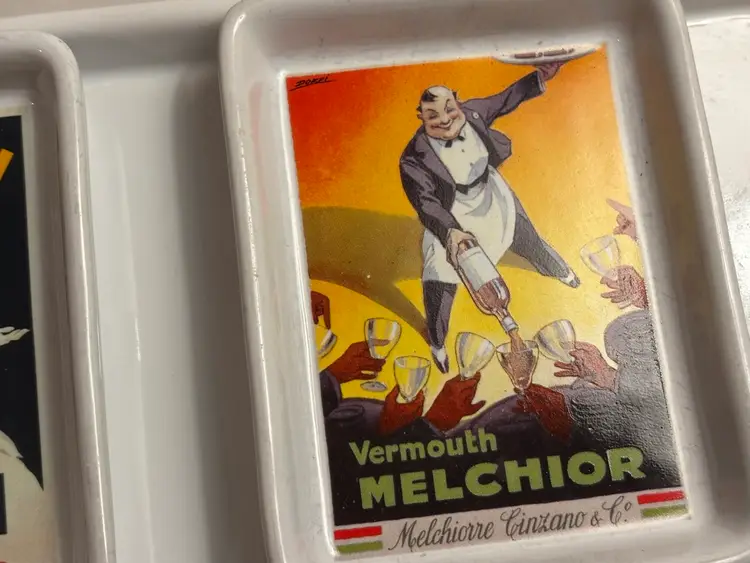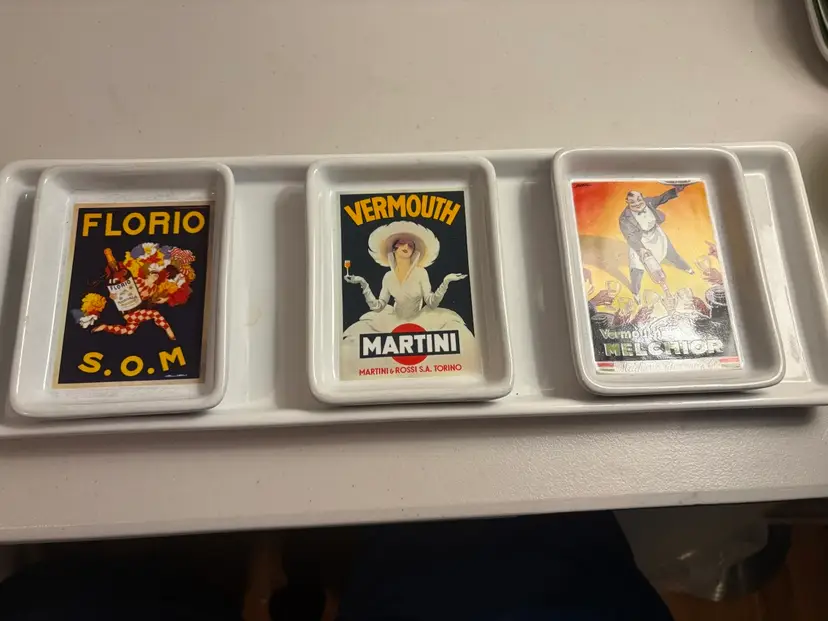The Pottery Barn Vintage Posters Serving Tray with Appetizer Dish Plates is a charming addition to any dining or entertaining space. Made of ceramic with a vintage posters theme, this white tray adds a touch of retro charm. Perfect for serving appetizers or drinks, this functional and stylish piece is sure to impress guests and elevate your dining experience.