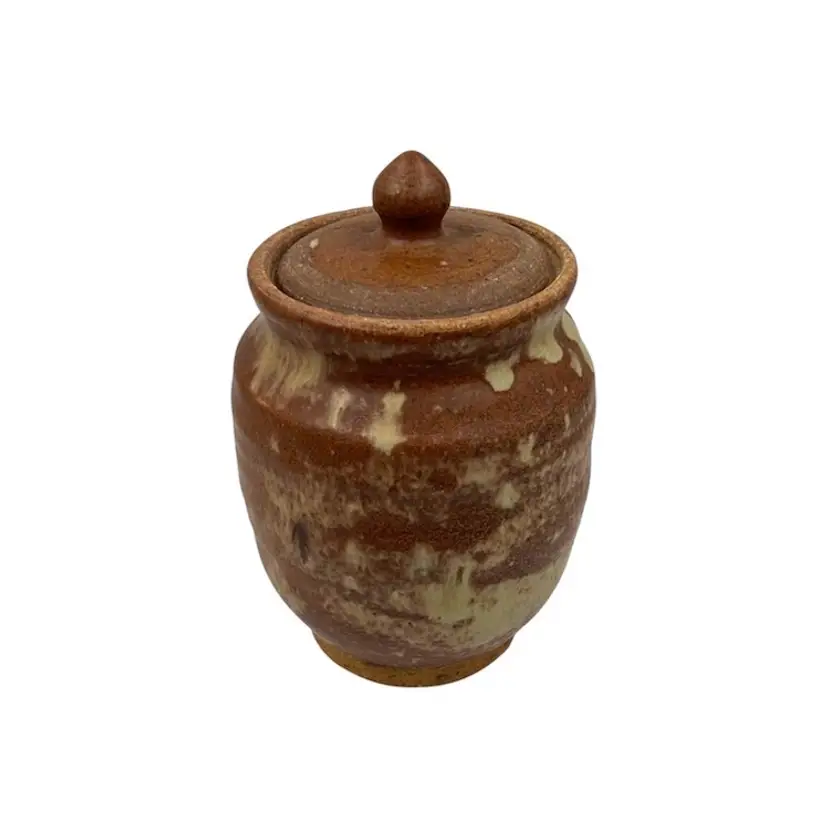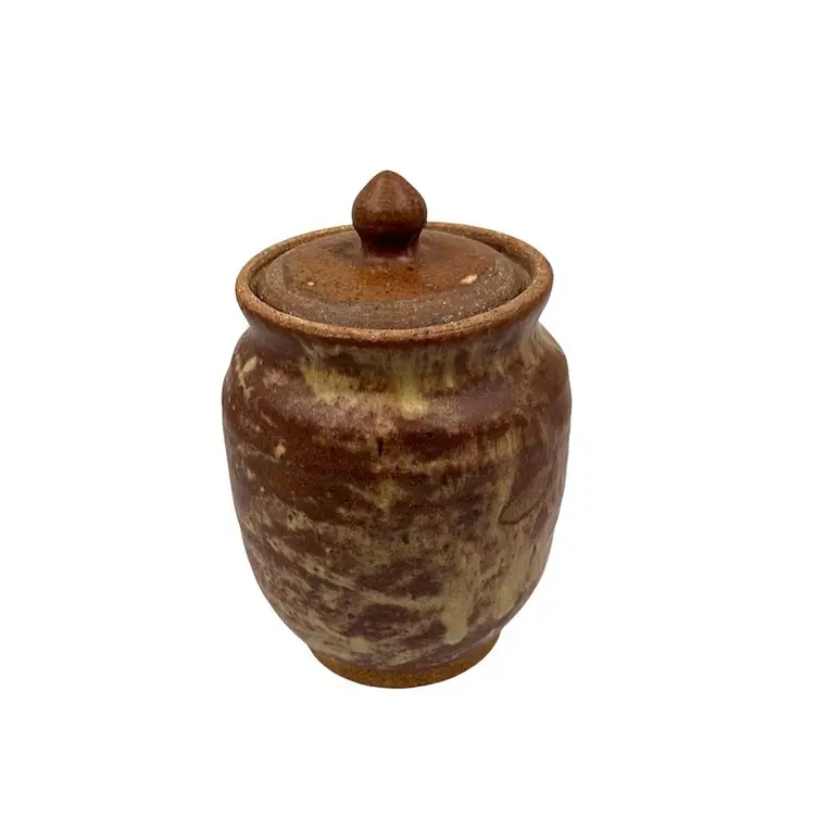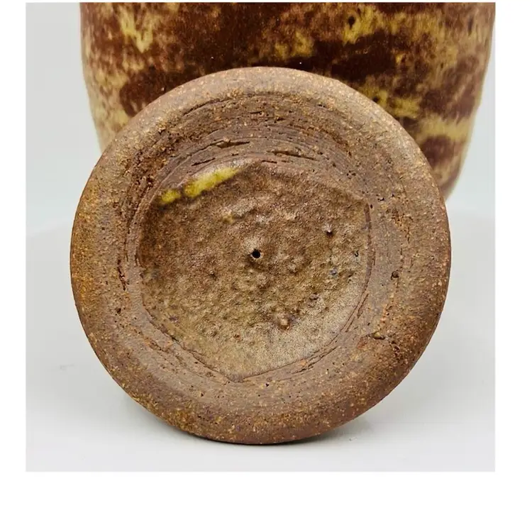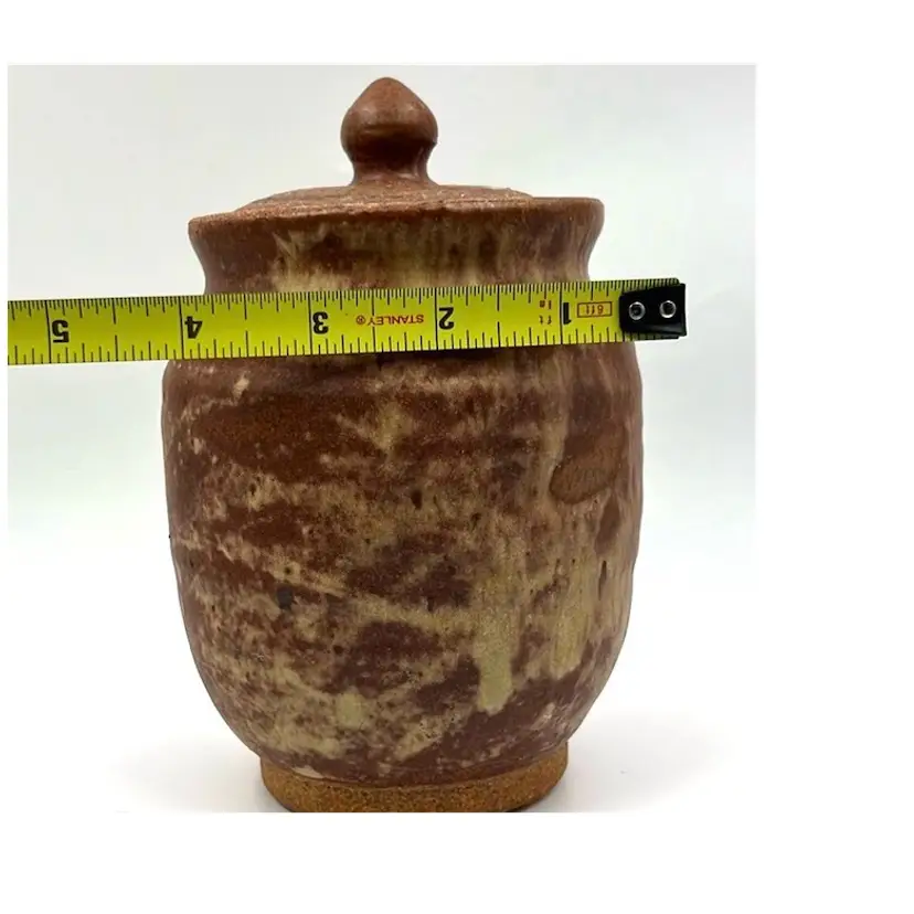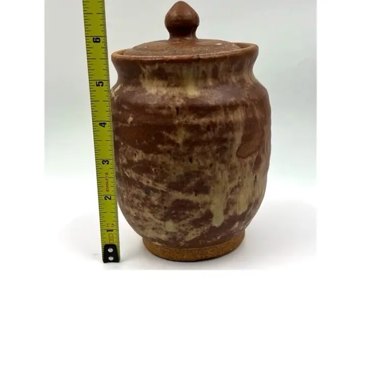 👉7x4” Glazed Interior Vase 👉Jar with Lid Brown and Tan Drip Glaze 👉No Chips or Cracks 👉Review Photos for Best Condition Description 👉Sold as Shown