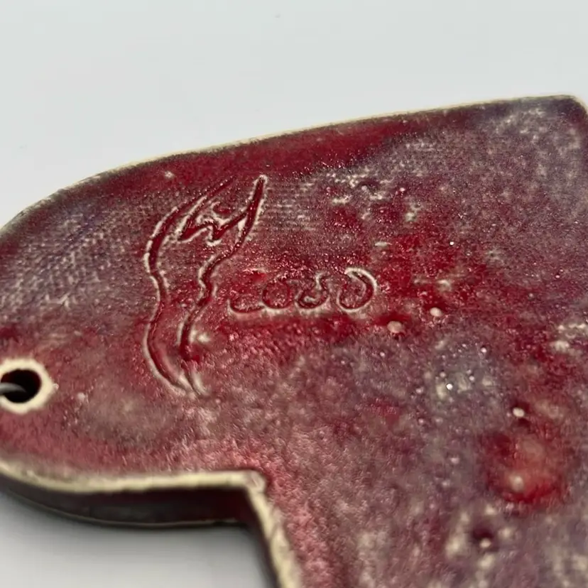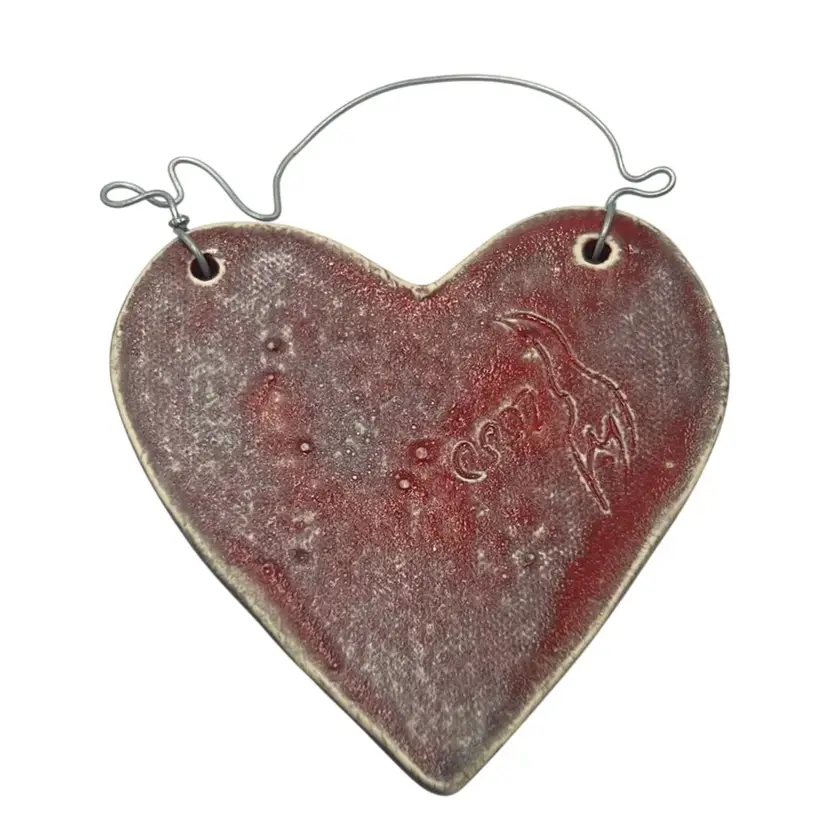 Sweet red glazed carved pottery heart. Marked on back. Vintage 2000.