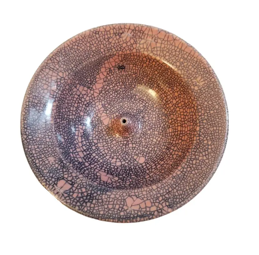 Incense holder, but could also be used as a trinket or catchall dish. In good pre-owned condition. There are a few rough spots that I think happened during the glazing process as opposed to being cracks (see pictures). Approximately ~ 5.5"W x 1.75"H