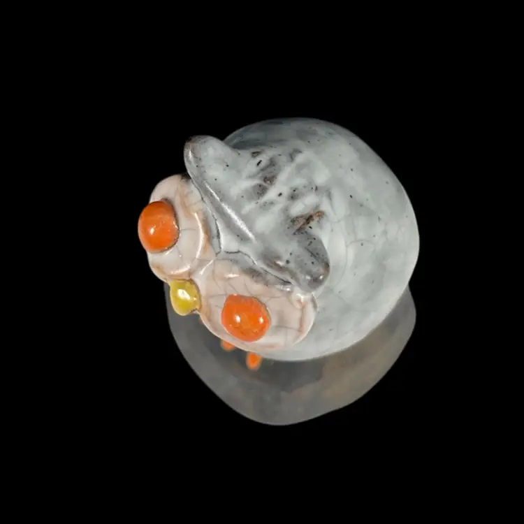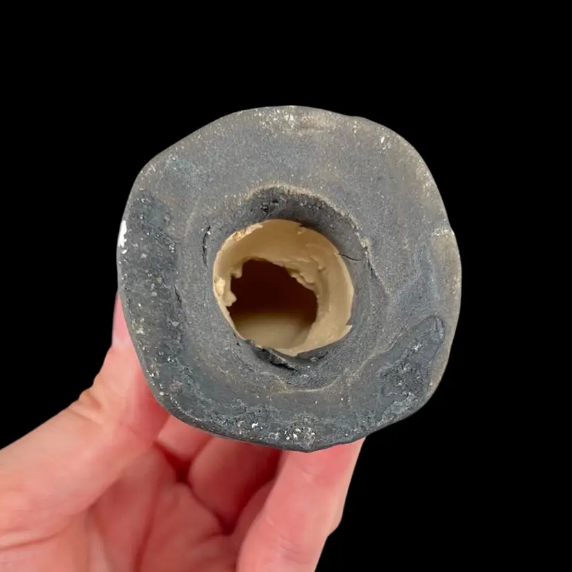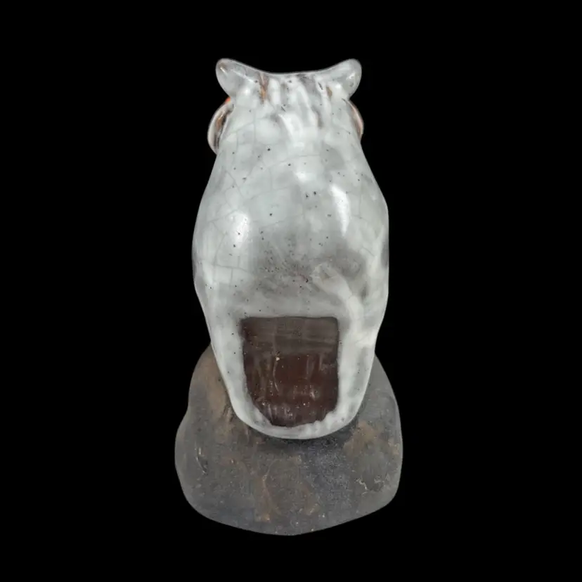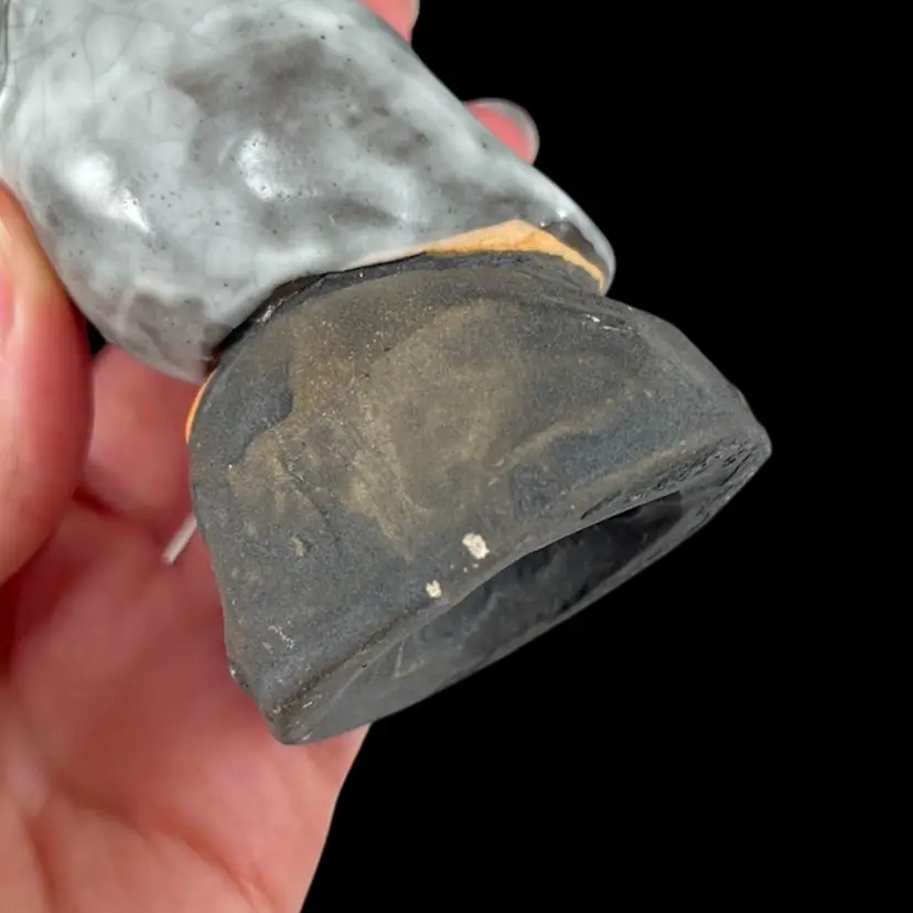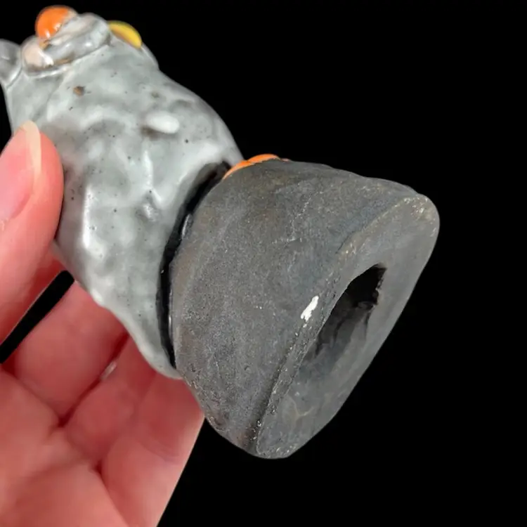 Approximately 3.25” tall and 2” in diameter. No cracks. A couple small paint chips to bottom rim see photos #9 & #10.