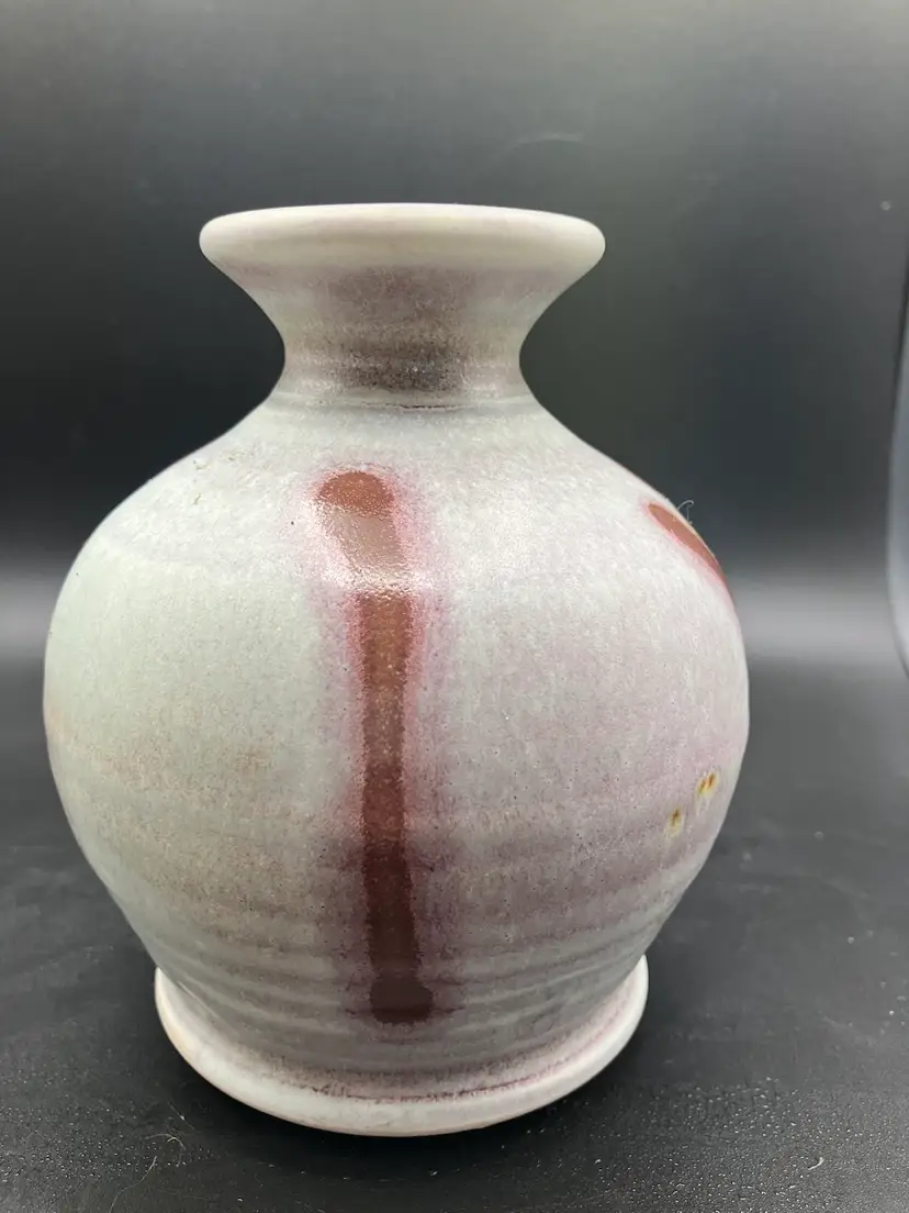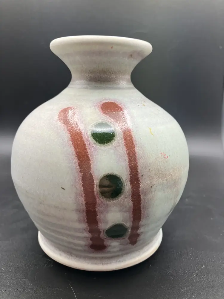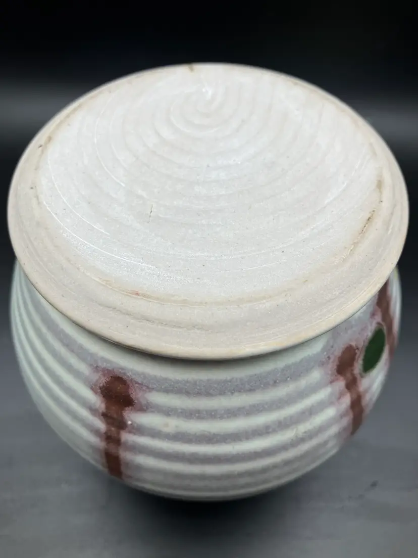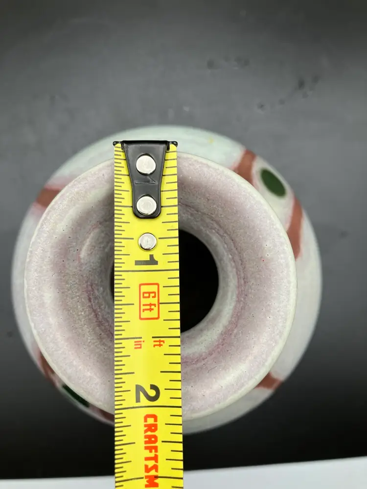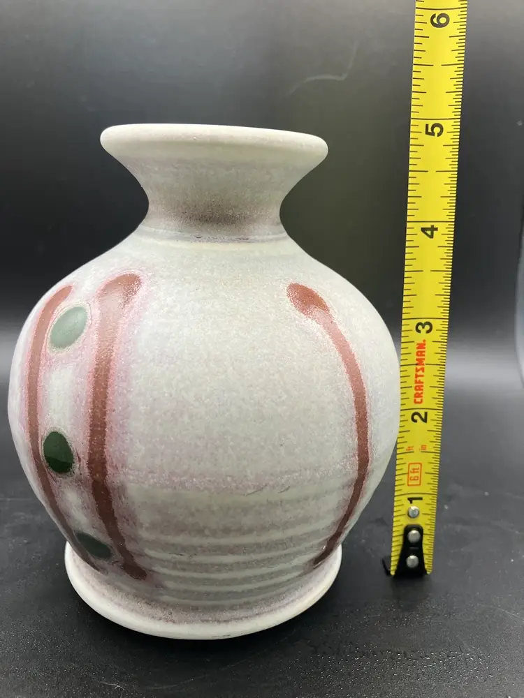 Candle holder is signed on the bottom. Small part where tan glaze missed - see pic. Good condition. Check shipping- will refund overages.