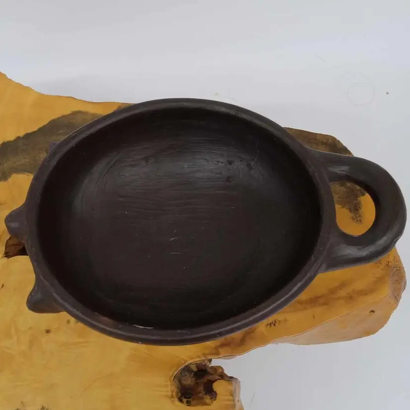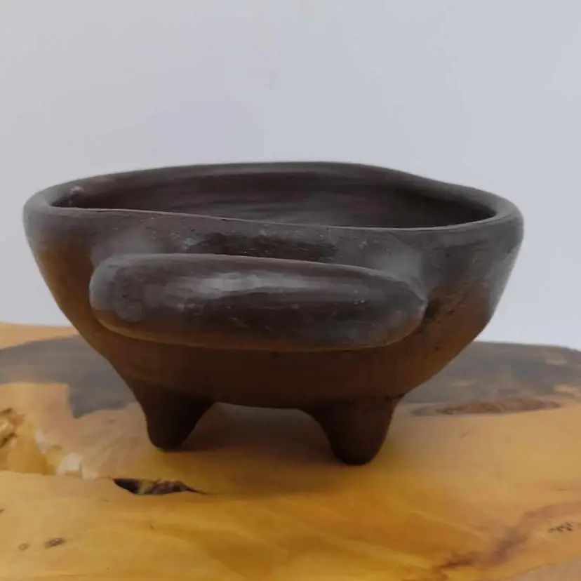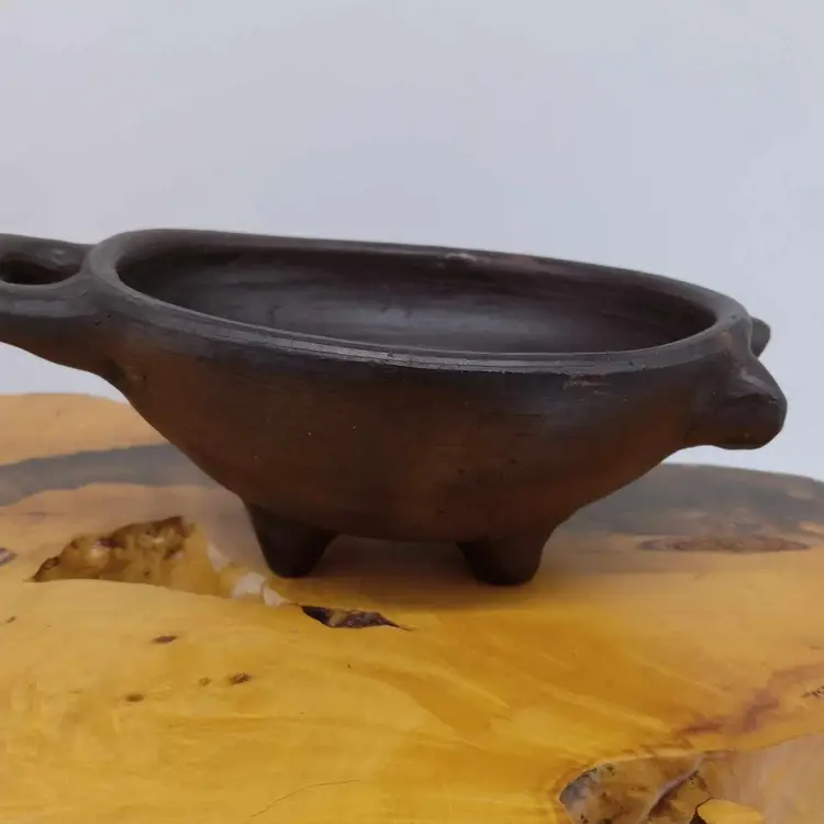 Made in Mexico, this pottery pig bowl would be great for salsa or trinkets. It's black and measures 6 3/4x 4.5x 2 1/4 inches. No chips or cracks.