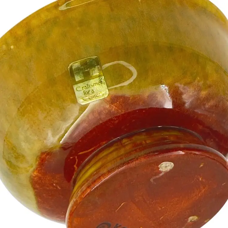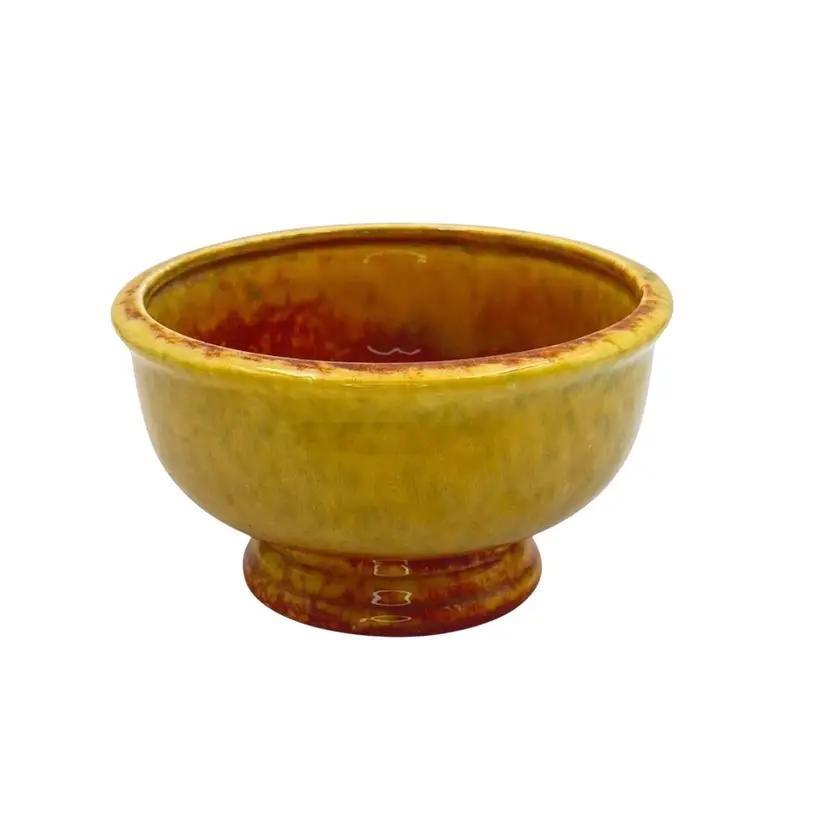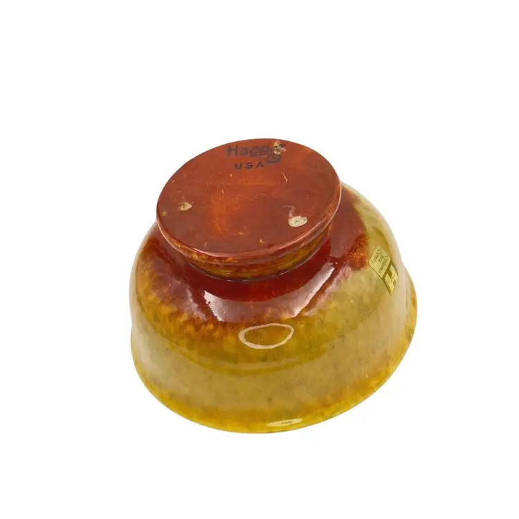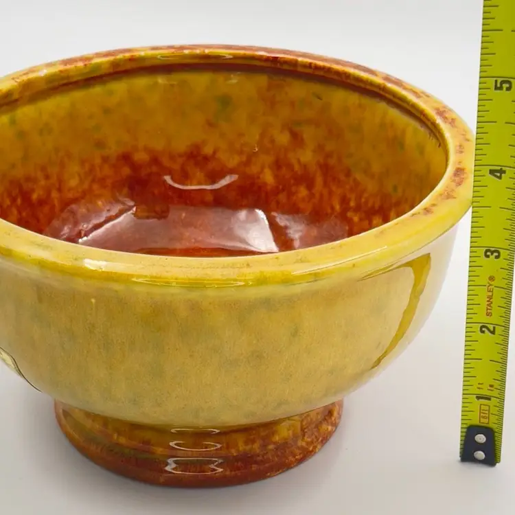 ๐ 6.5x3.5โ Round Footed Gold Yellow Glaze ๐Impressed Stamped Haeger USA & Sticker ๐No Chips or Cracks ๐ Review Photos for Best Condition Description ๐ Sold as Shown