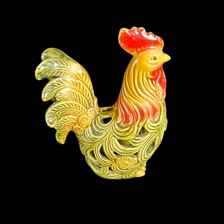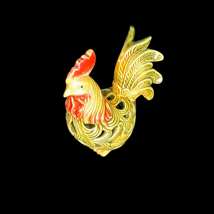 Pottery Reticulated Rooster Figure 4 1/2” No Noted Flaws