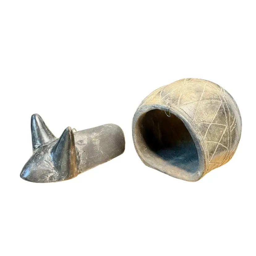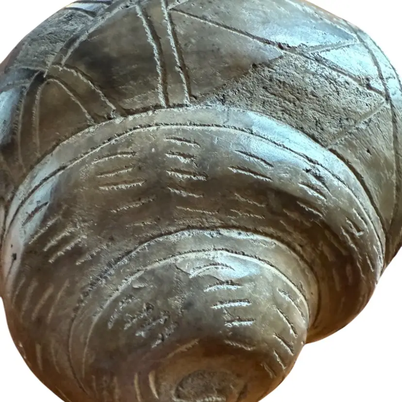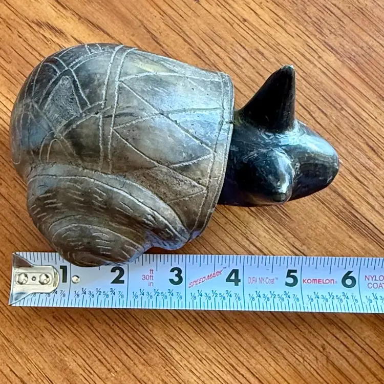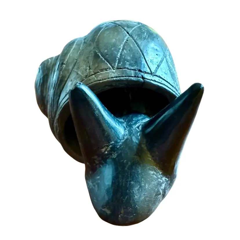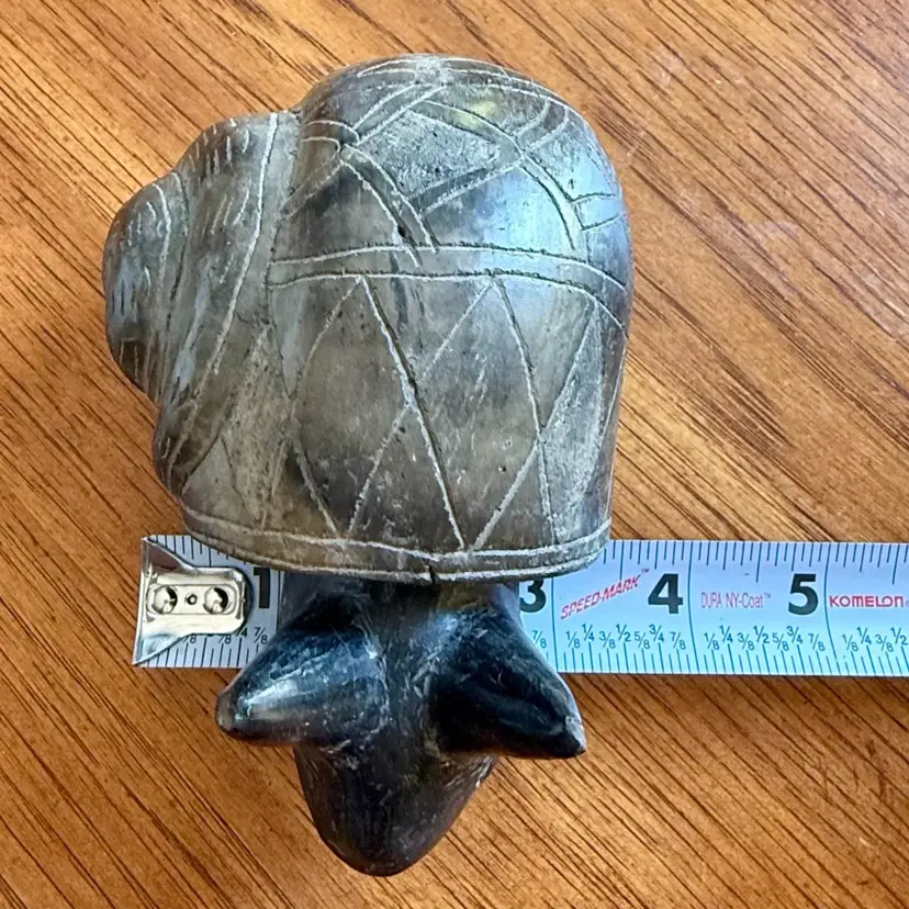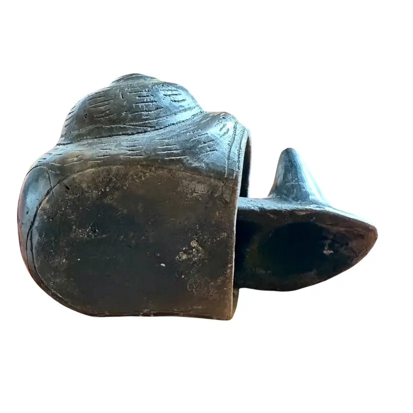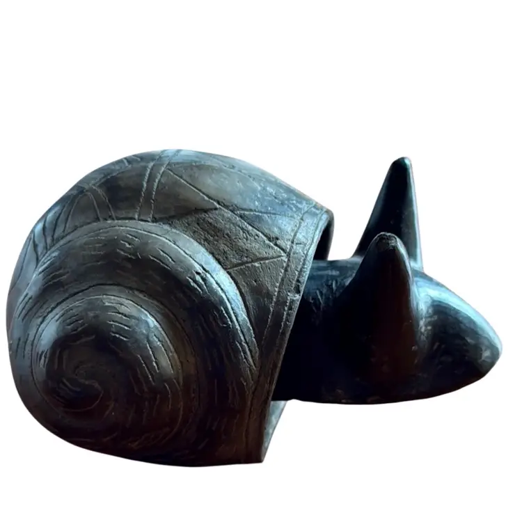 Bobble head gray snail pottery figurine.