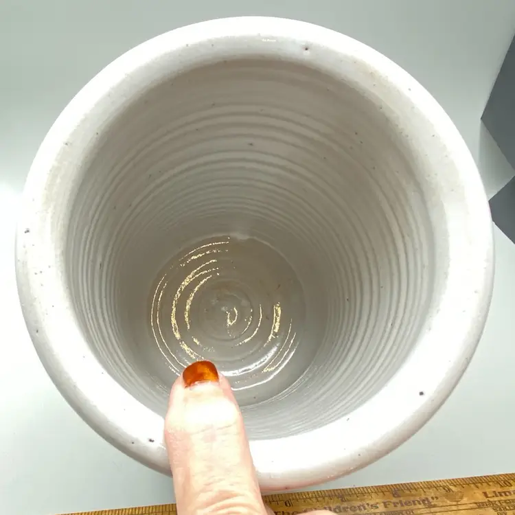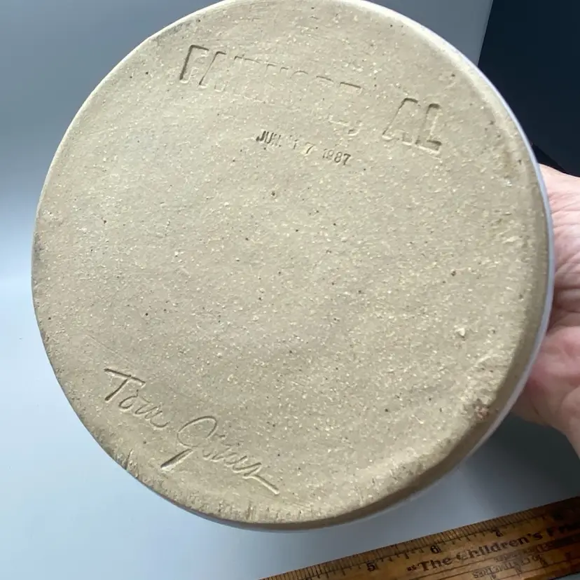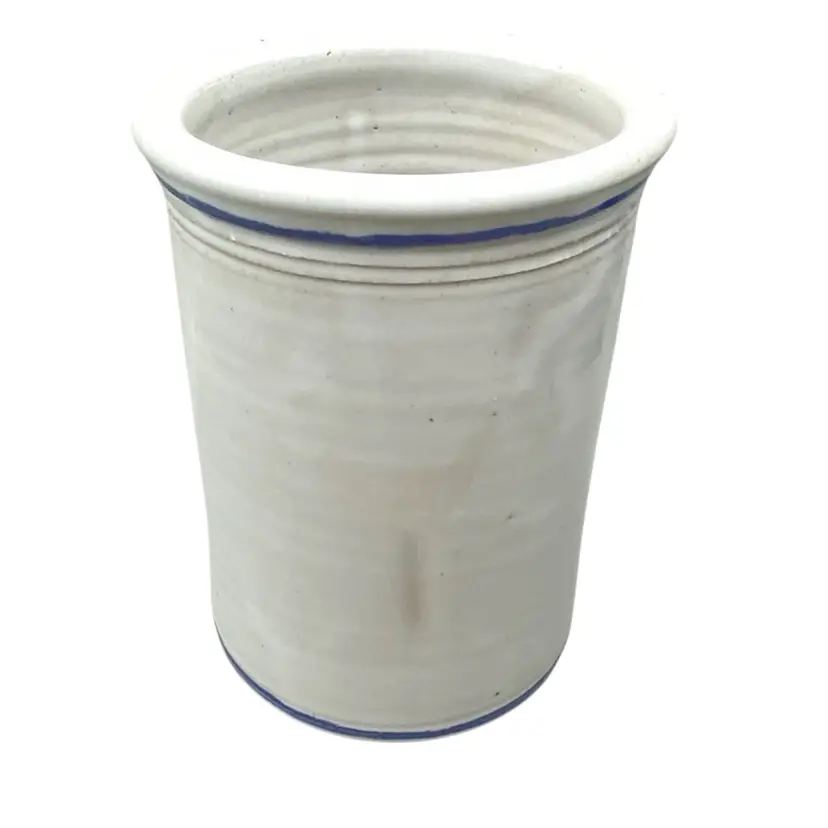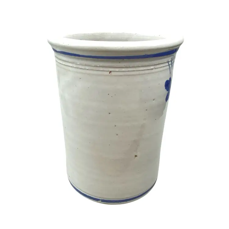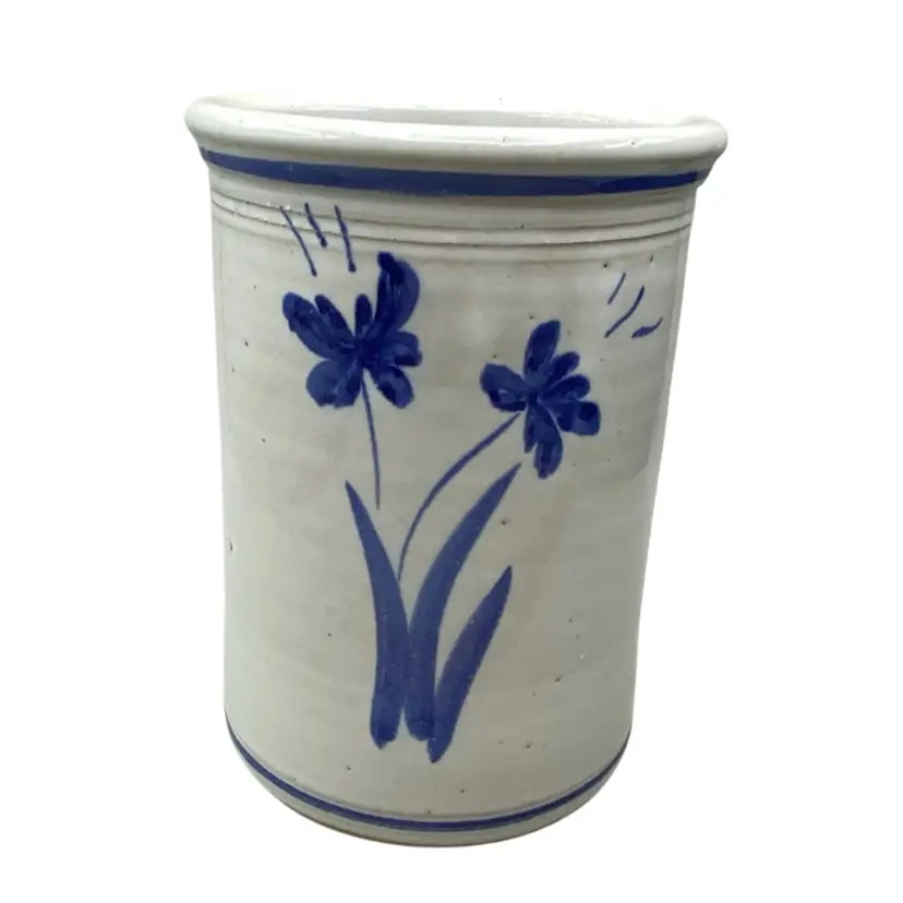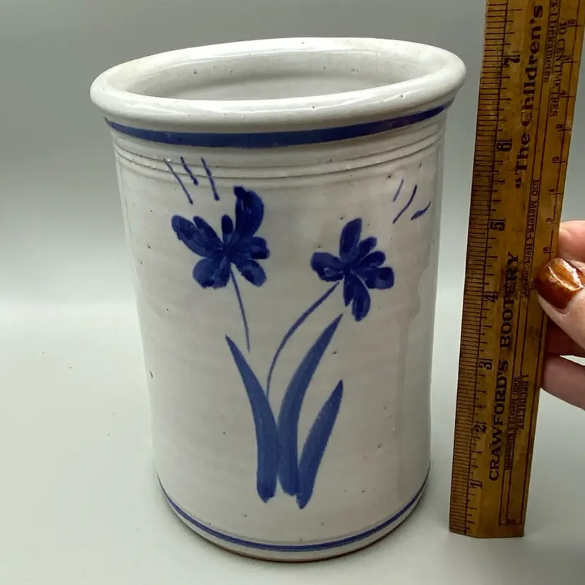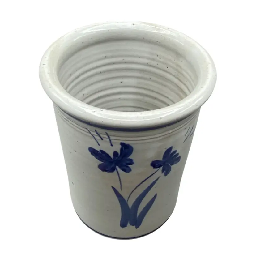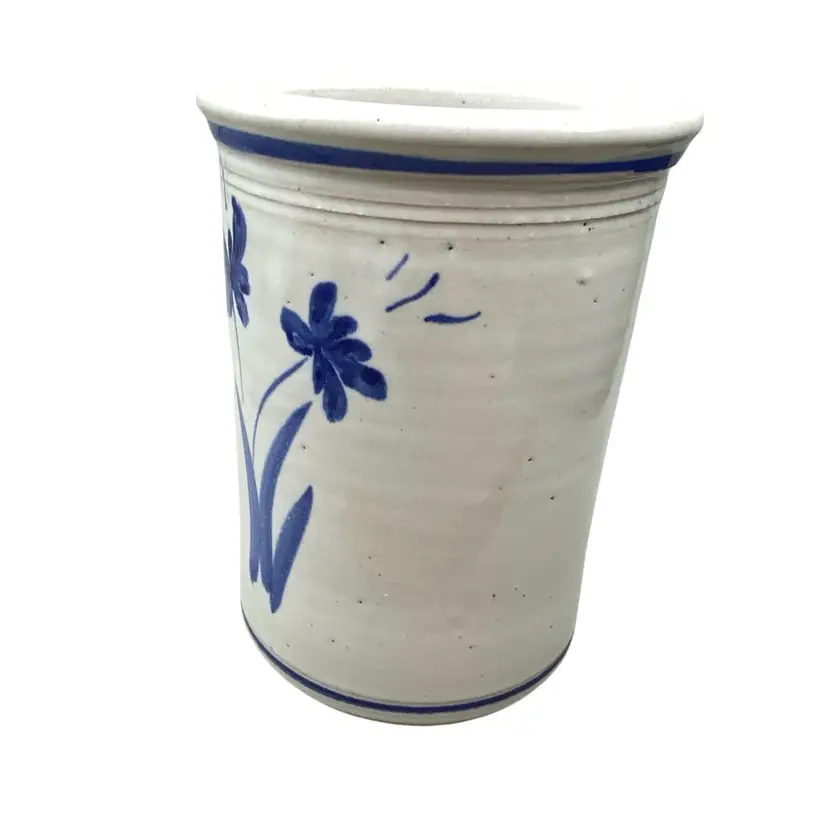 Pottery Utensil Crock Floral Blue White CottageCore Modern Garden 7” Thomas Jones 1987 Fairhope AL