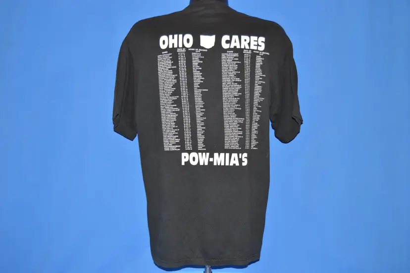 22x29, double-sided shirts for the National League of Families of POW/MIA. Includes the slogan, "You Are Not Forgotten" and the back says, "Ohio Cares".
