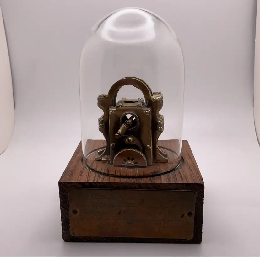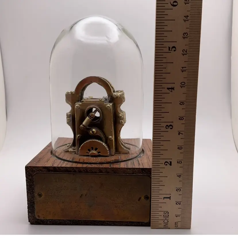 Fair pre-owned condition with normal signs of use and wear; brass plate has some discoloration and is difficult to read.
