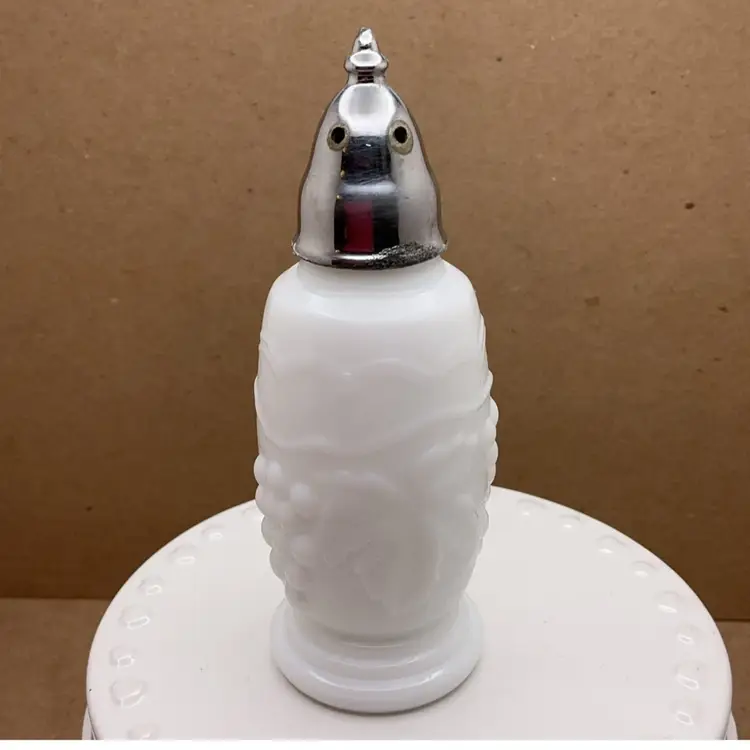 Fair pre-owned condition with normal signs of use and wear; metal discoloration to top. Glows yellow-green.
