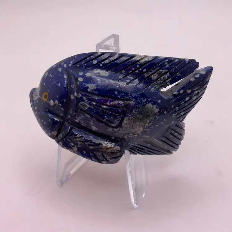 Hand carved, no signature; fissure’s throughout. Possibly Lapis?
