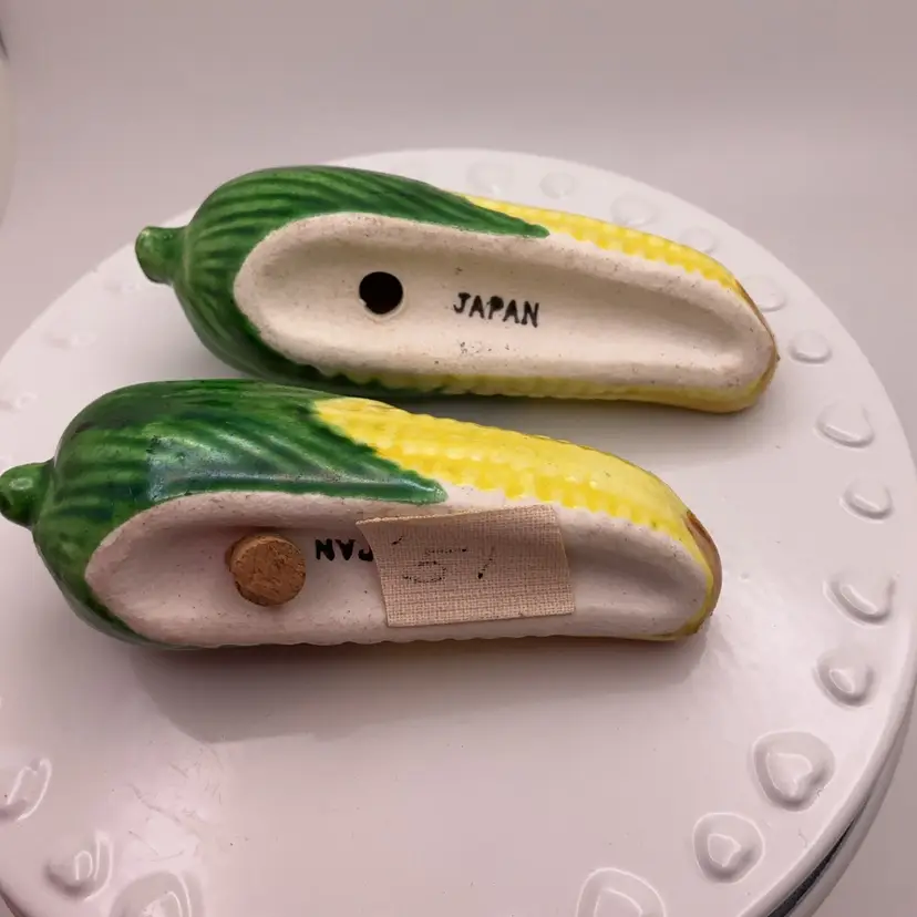 Fair preowned condition; some paint loss; one cork stopper missing . Stamped Japan.