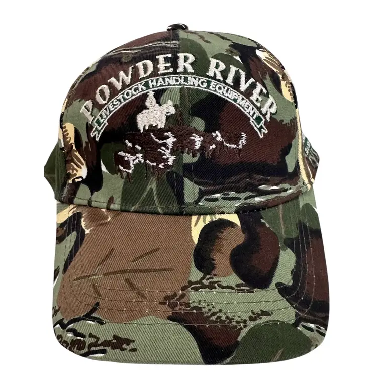 The Powder River Livestock & Rodeo Equipment Camouflage Adjustable Hat is a versatile and stylish accessory suitable for various occasions. Made from durable cotton with a canvas fabric type, this green hat features a camouflage pattern, perfect for outdoor activities like rodeos, farming, and ranching. The adjustable feature ensures a comfortable fit for both men and women, making it a practical and trendy choice for all seasons.