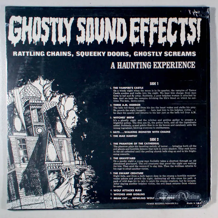 Ghostly Sounds, from Power Records, is rattling chains, squeaky doors, ghostly screams and other sound effects for a haunting experience.