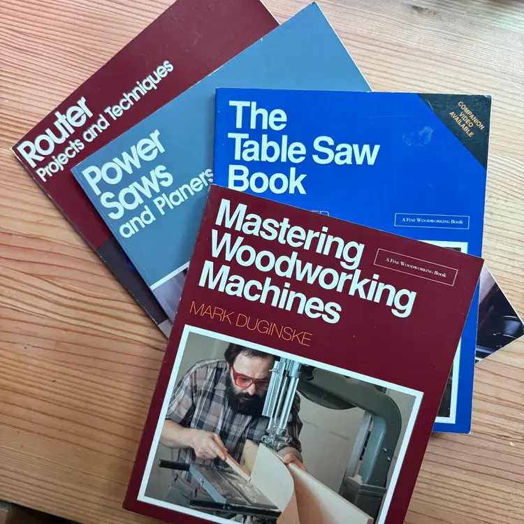 Fine Woodworking Magazine books on power tools. They're older (early '90s), but the tips, skills, and techniques are fully applicable to modern machines. The Table Saw Book Mastering Woodworking Machines Power Saws and Planers Router Projects and Techniques