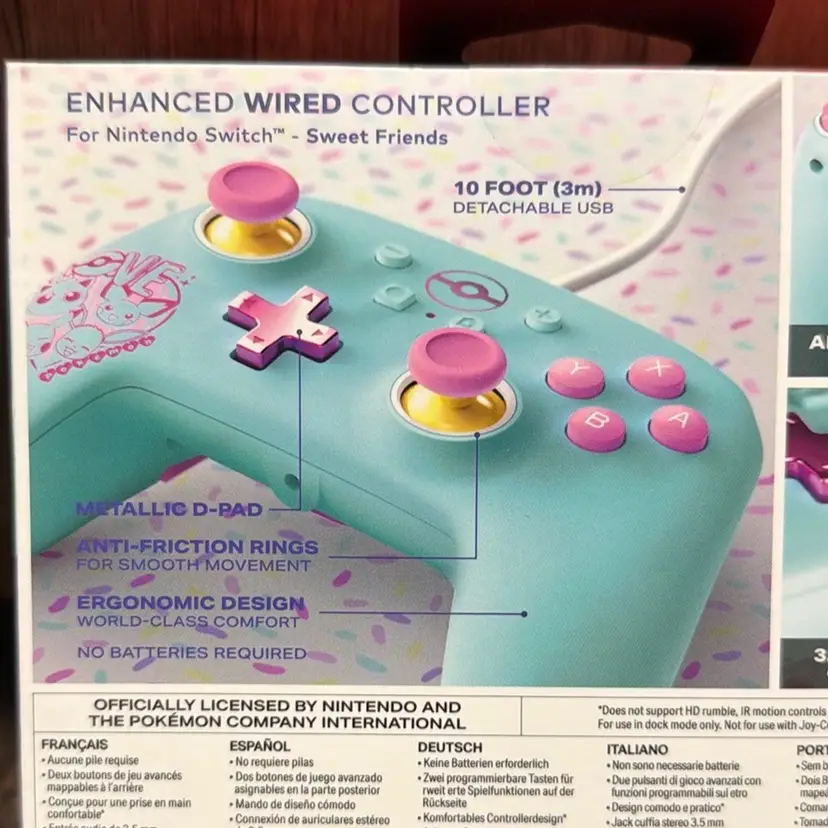 Enhance your Nintendo Switch gaming experience with this officially licensed PowerA Pokémon wired controller. Featuring a colorful Pokémon design with pink and blue accents, this controller combines comfort, performance, and style.